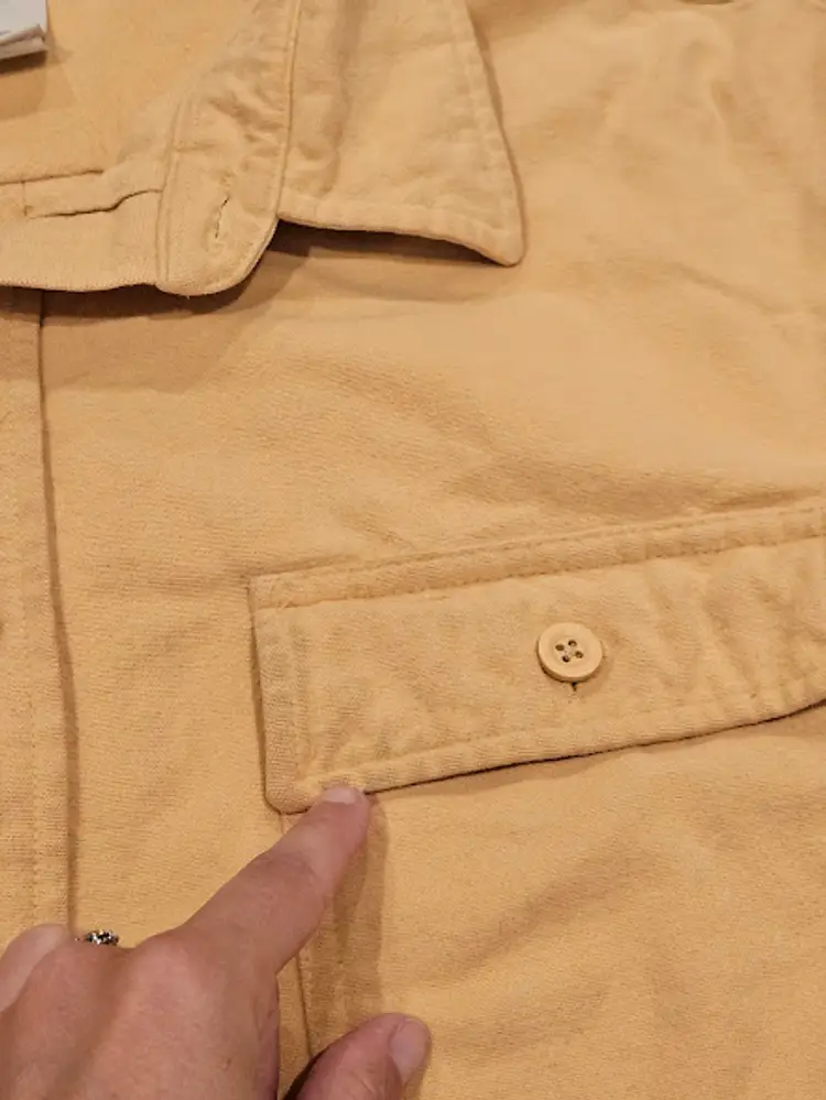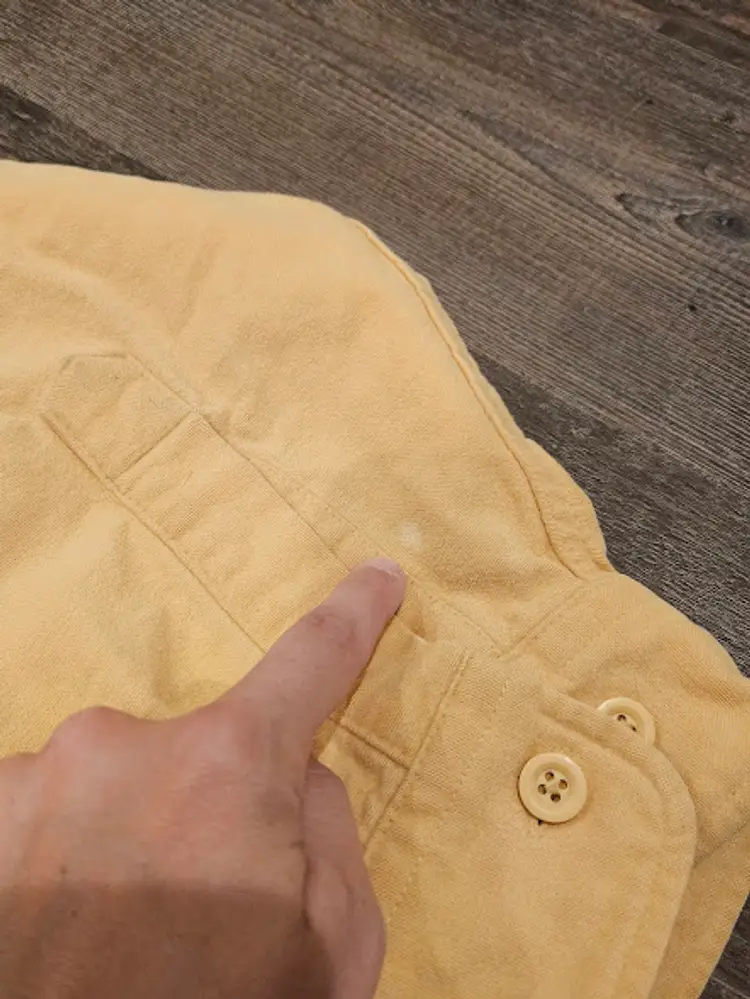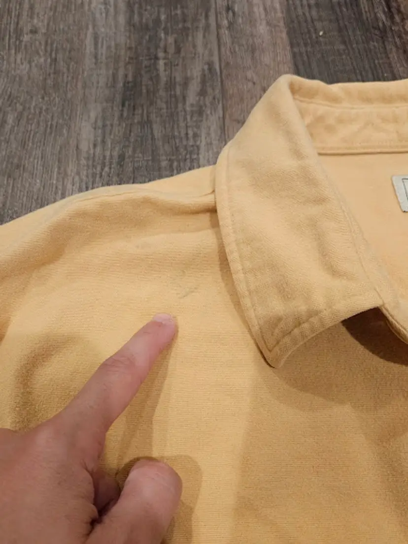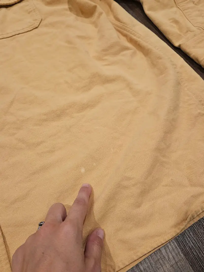 pockets cotton a few stain marks throughout the front, see photos collared armpit to armpit: 26.5 inches length: 31 inches