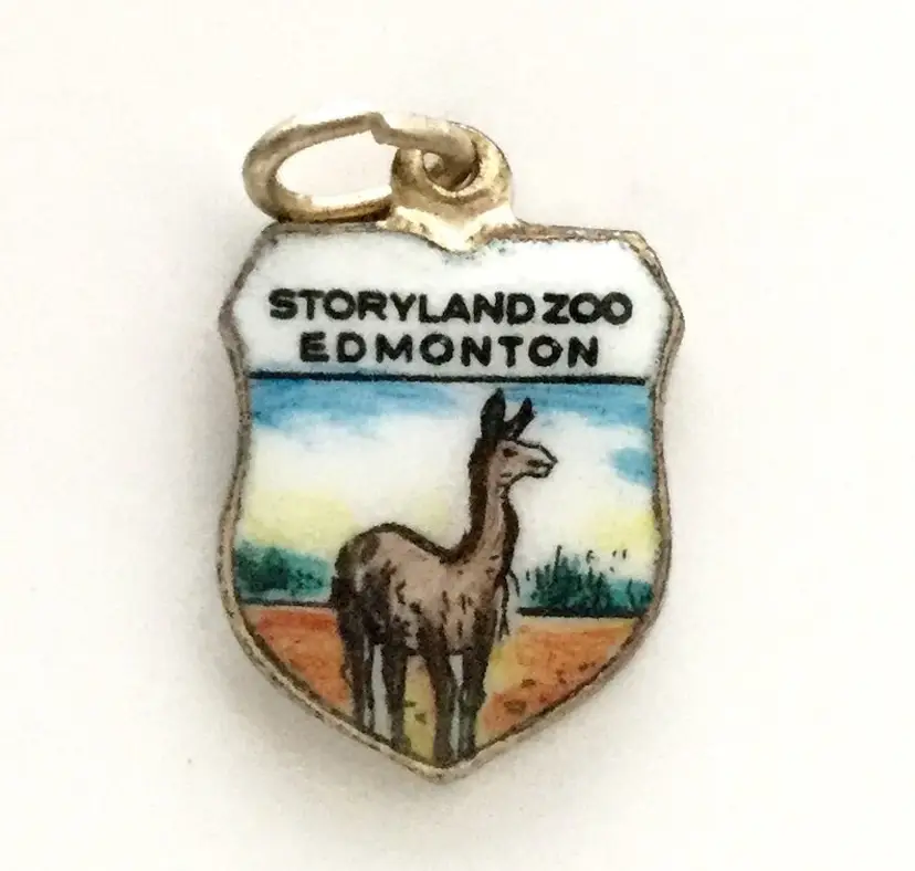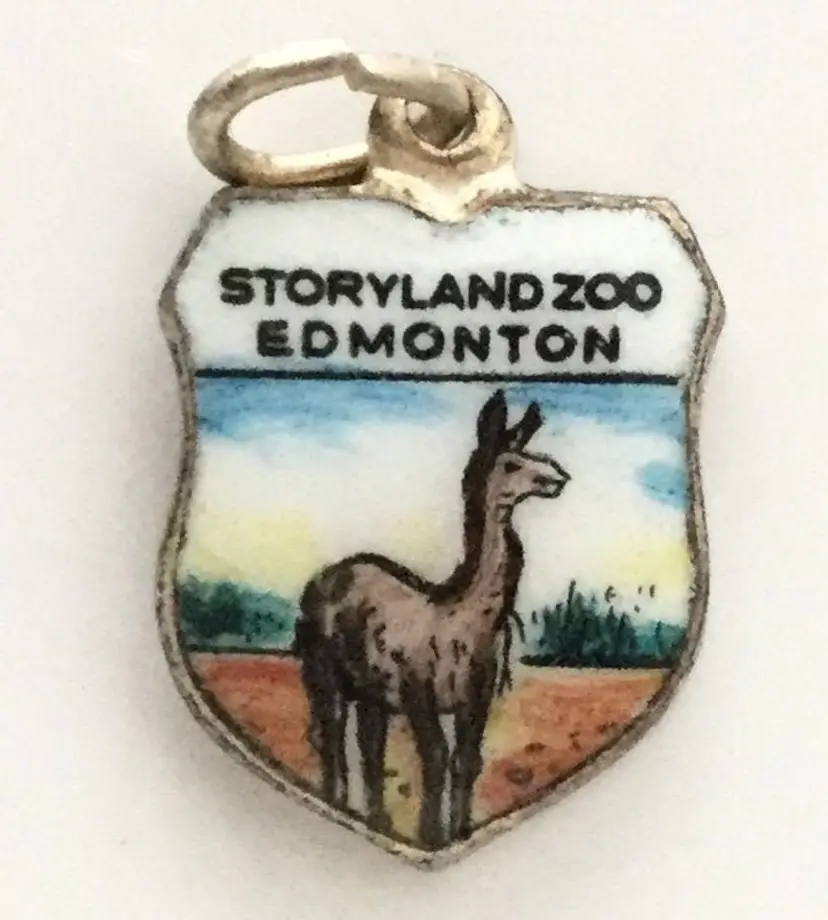 Llama - Storyland Zoo Edmonton - Vintage Enamel Souvenir Travel Shield Bracelet Charm - Silver Plated