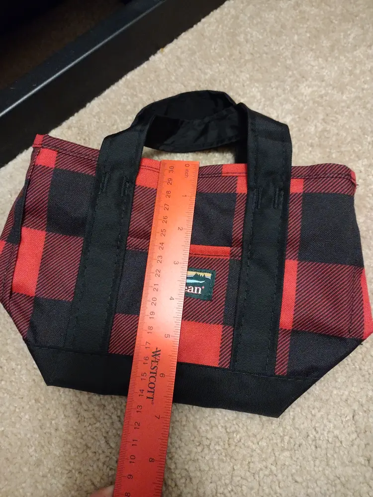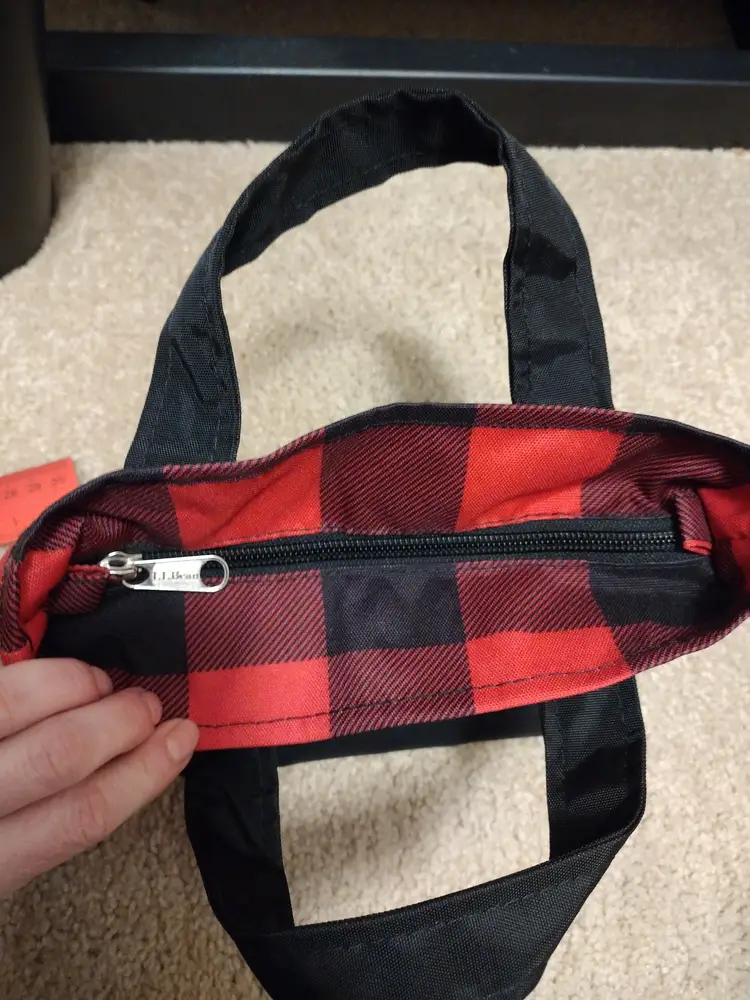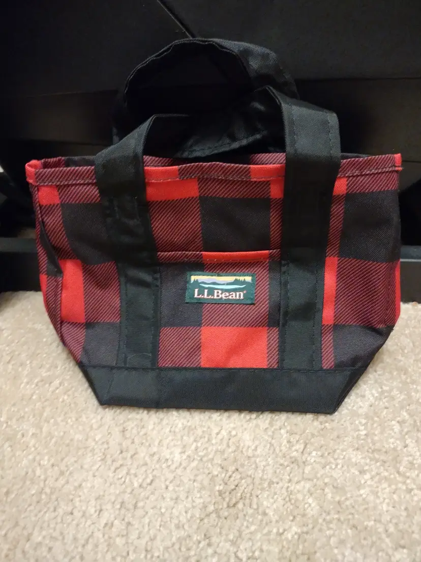 L.L.Bean Everyday Lightweight Totes Mini tote bag. Crafted using rugged, lightweight nylon fabric. Allover classic plaid pattern. Reinforced handles. Zippered top closure. One exterior open pocket. Signature brand name logo patch on the front. Double-layer bottom. Imported.