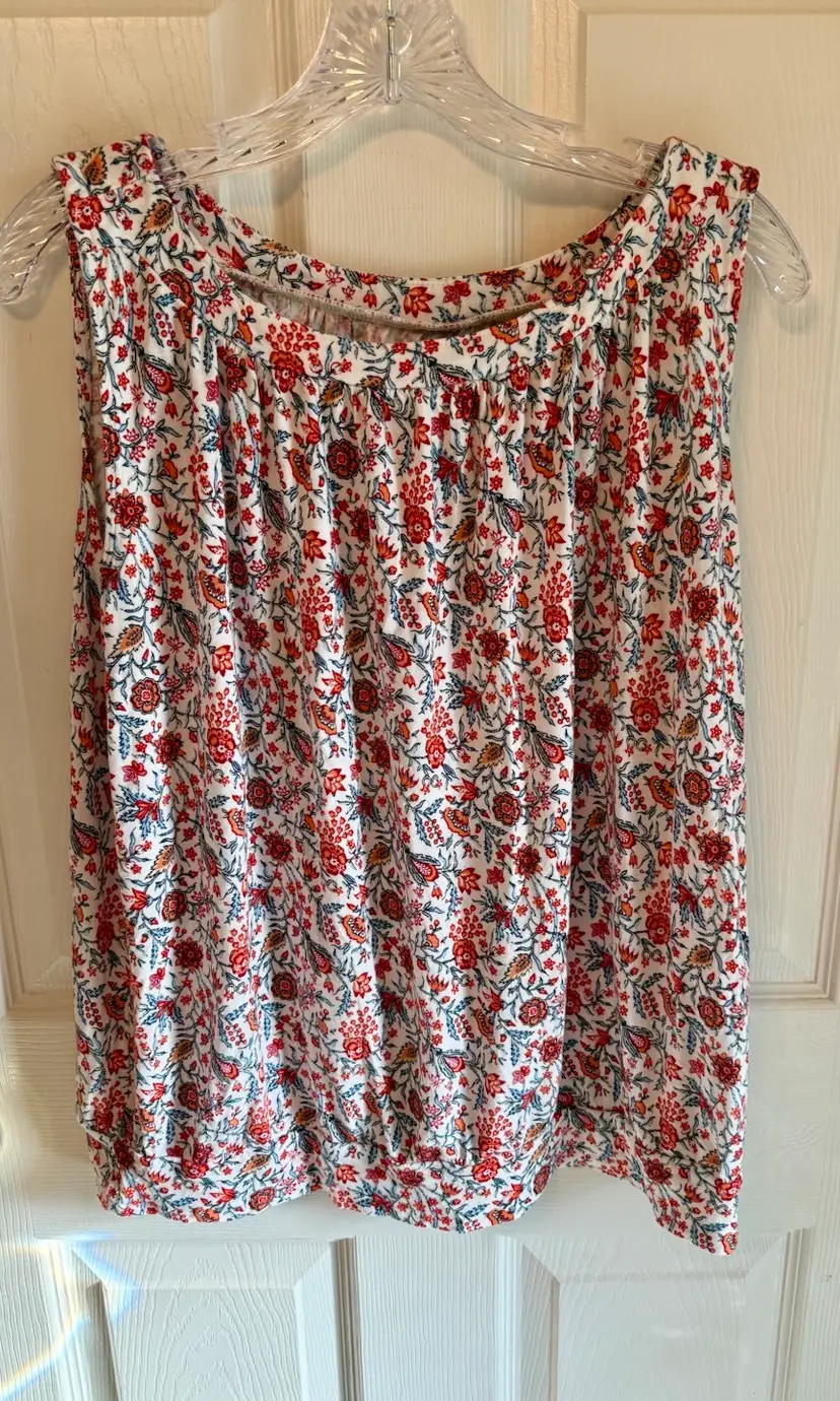 Loft outlet white sleeveless shirt size extra large band across the bottom measurements pit to pit 21 1/2 inches. From the top of the shoulder to the bottom of the top is 23 1/2 inches.
