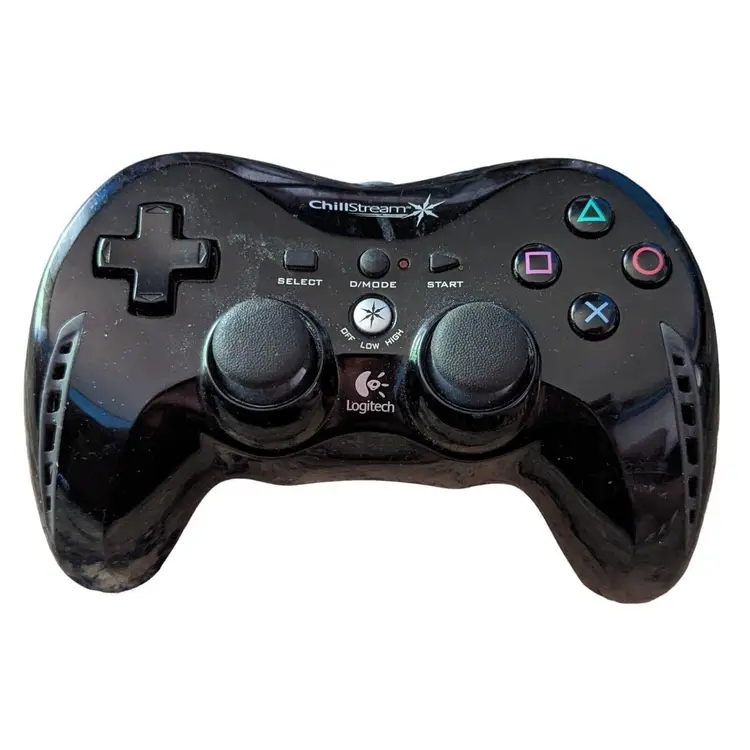 Elevate your gaming experience with the Logitech Chillstream Controller for Sony PlayStation 3. This black controller, made of durable plastic, features a built-in fan to keep your hands cool during intense gaming sessions. With its 6ft cable length, you'll have the freedom to move around without worrying about losing connection.
