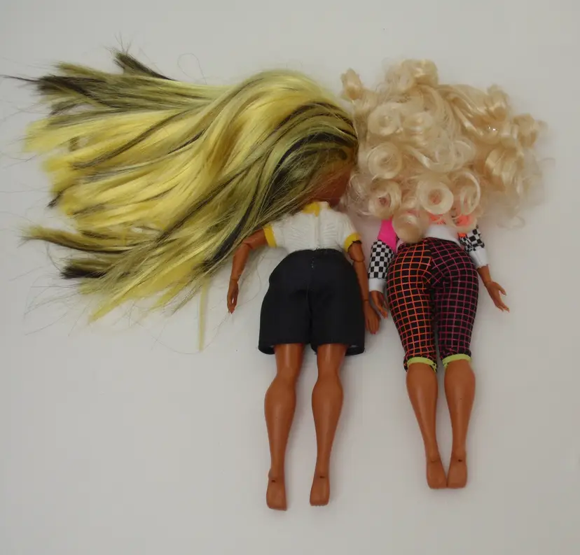 LOL Surprise dolls Alt Grrrl and LIGHTS Speedster. No shoes or earrings, not sure if these are the original clothes. Hair is messy but in good shape. Dolls come as shown.