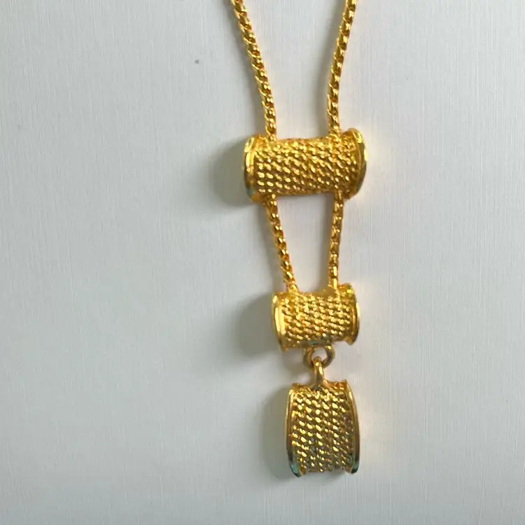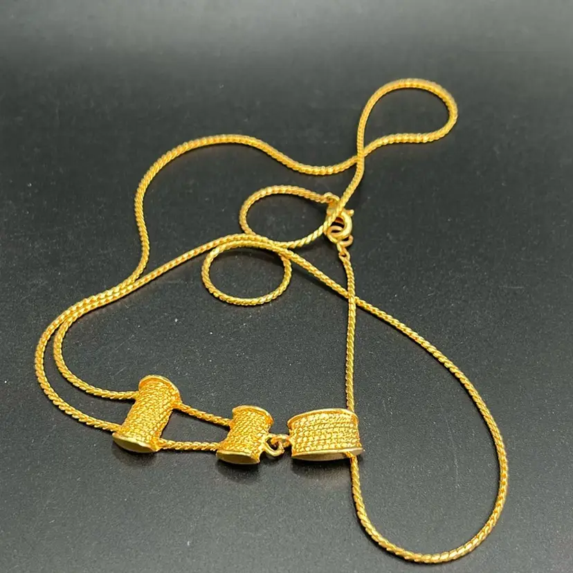 Long Gold Chain With Three Accents, Lobster Clasp, 26” Long