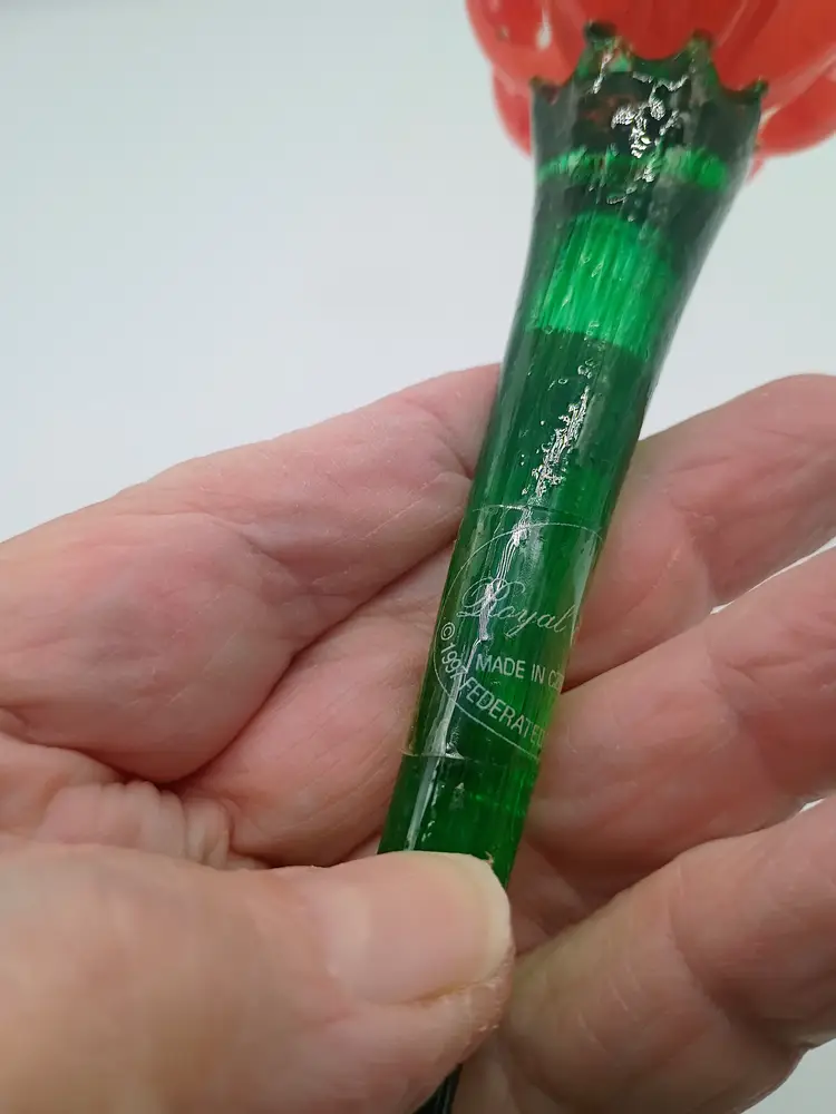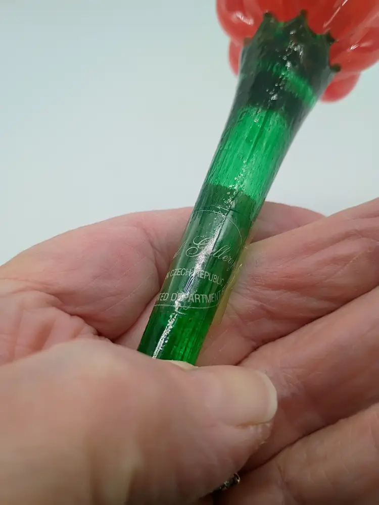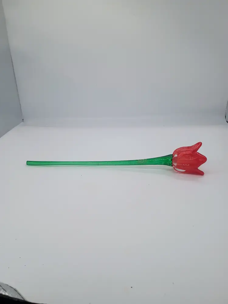 Long Stem 14" Hand Blown Art Glass Single Red Tulip Czech Republic Royal Gallery. Vintage Circa 1990's. This is 14 inches long and the flower bloom is 2.5 inches in diameter. This is preowned with original sticker. No chips cracks or flea bites. Near Mint condition. Ships in USPS