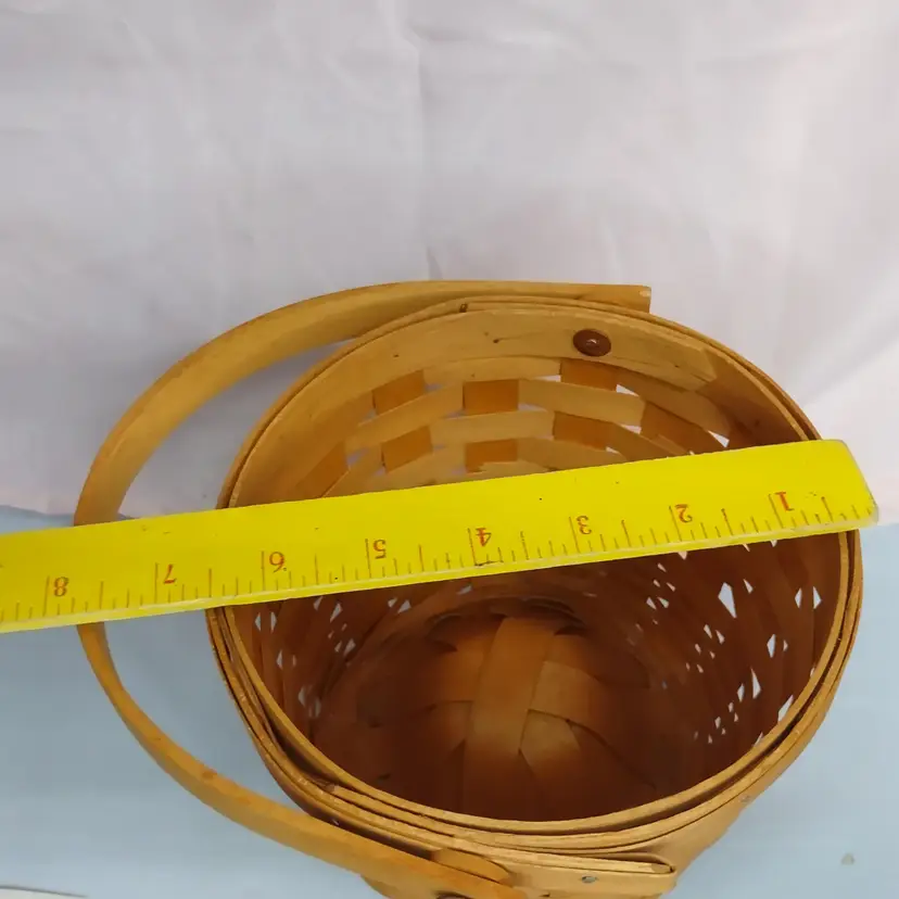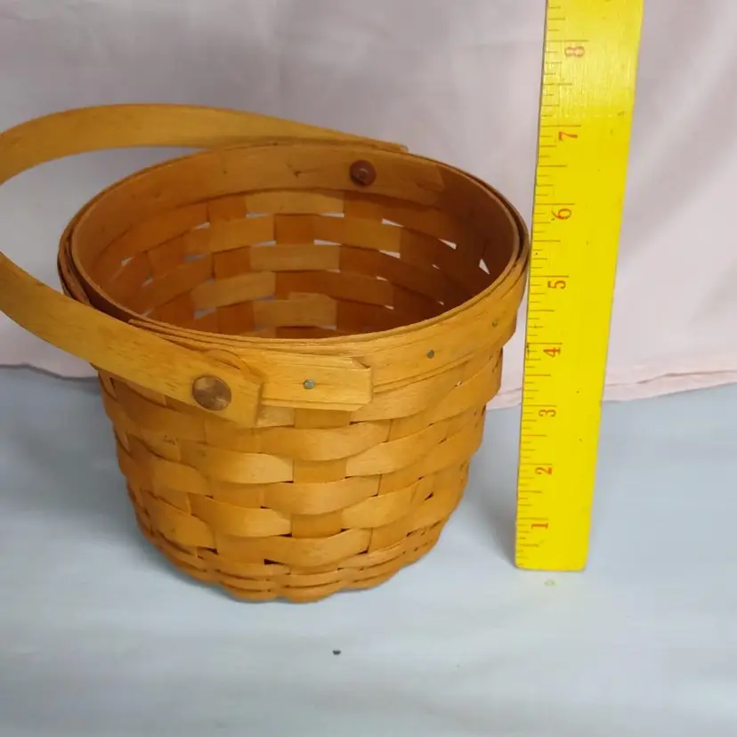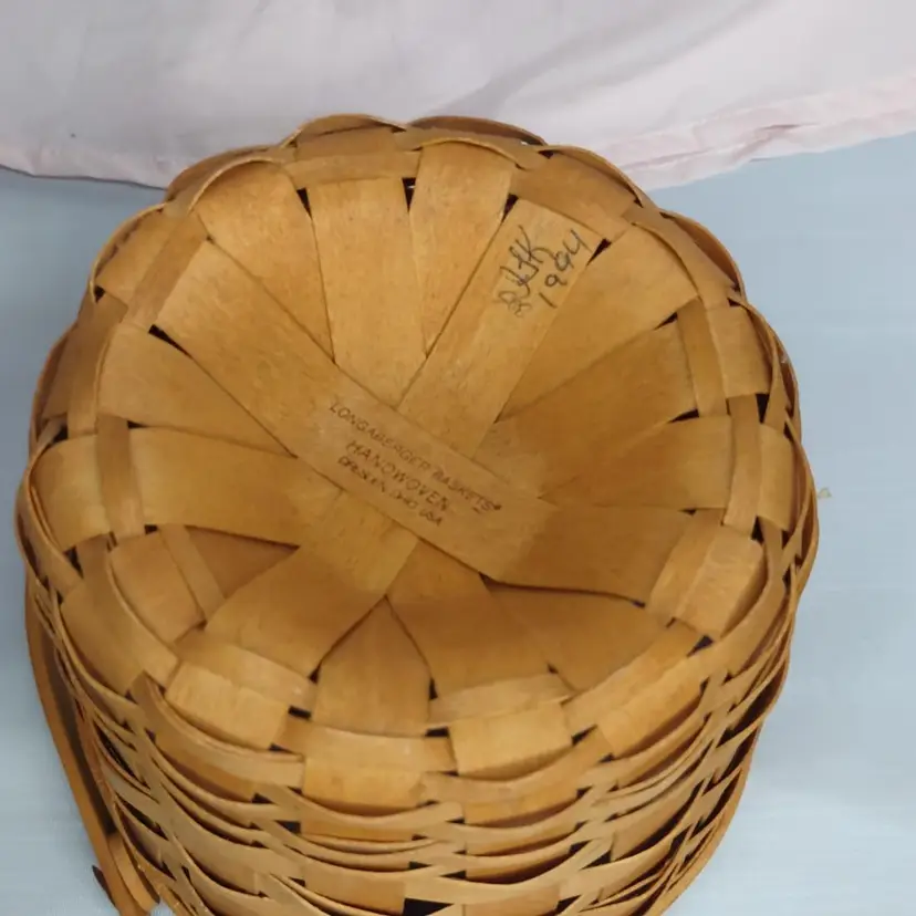 Longaberger 1994 Round Woven Basket. This basket does not have a liner. Stamped and signed on the bottom. This basket measures 5.5" tall and 6.5" wide. In great pre owned condition.