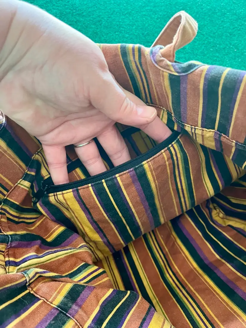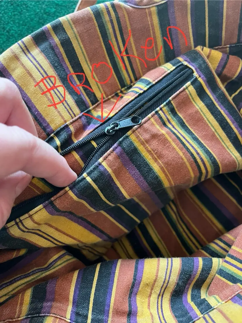 Please look at all the photos prior to deciding to make a purchase. This is a pre-owned item and along with a broken interior zipper, it has not been washed prior to photographing and listing - buyer will receive as it is shown. Buyer is strongly encouraged to review the photos and decide for themselves its condition as my interpretation may not align with yours. Prior to a purchase, questions not answered in photos, details, description are welcome.