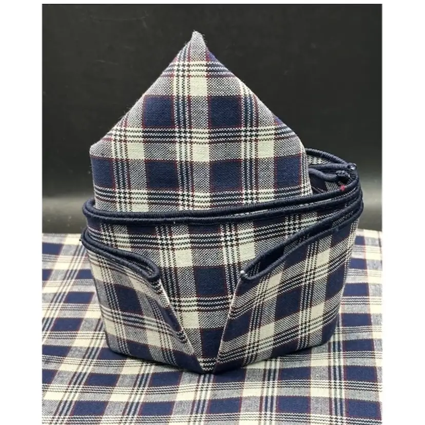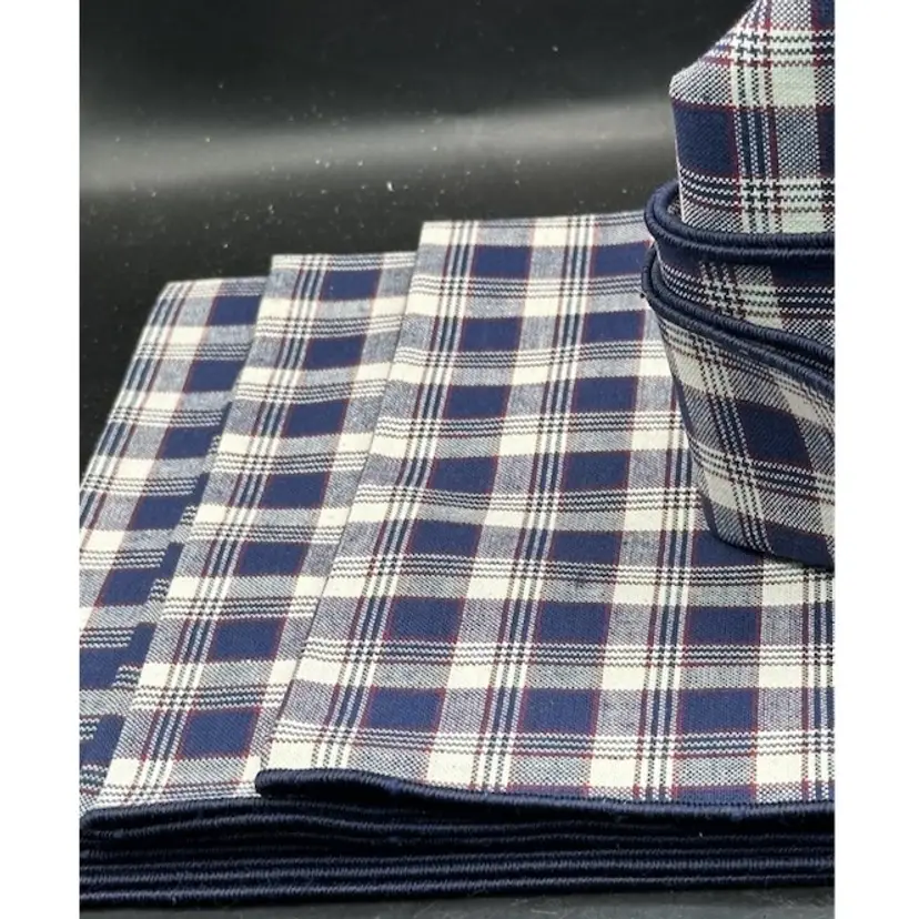 Add a touch of elegance to your dining table with this set of 4 fabric napkins from Longaberger's J.W. collection. These square napkins are perfect for all occasions and feature a beautiful woven pattern in blue, red, and white. Made from high-quality fabric, these napkins are both original and durable.