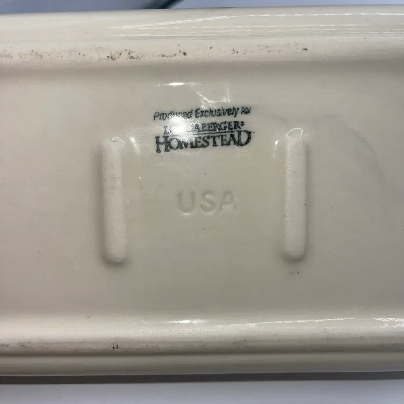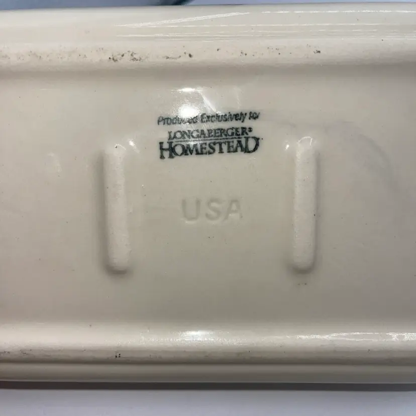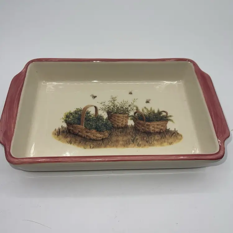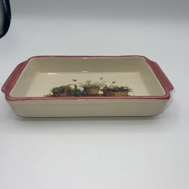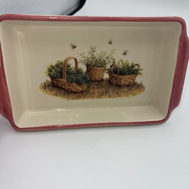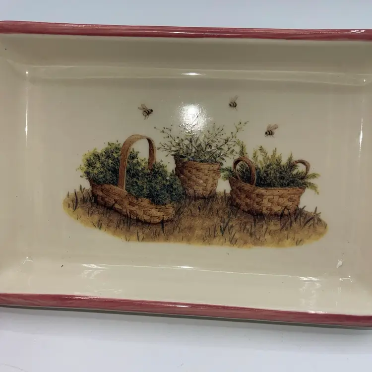 Longaberger Pottery Tray 8"×5" Homestead USA~Garden Pink Trim~Honey Bees