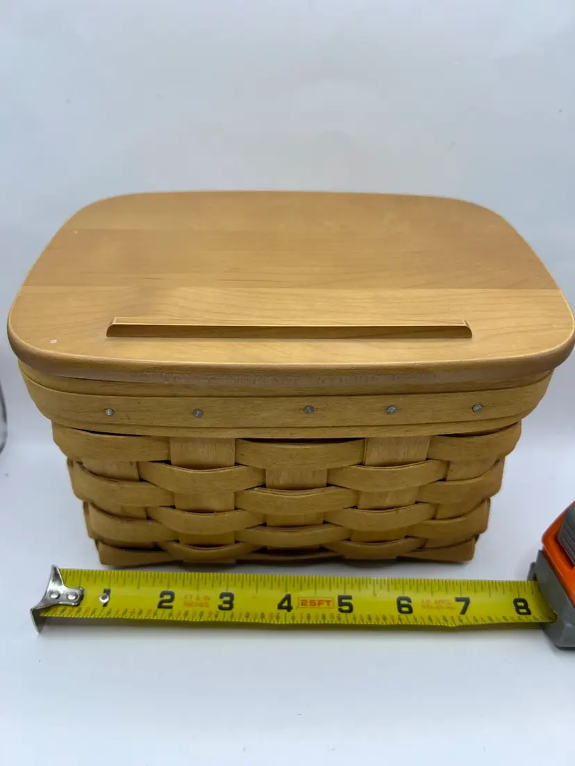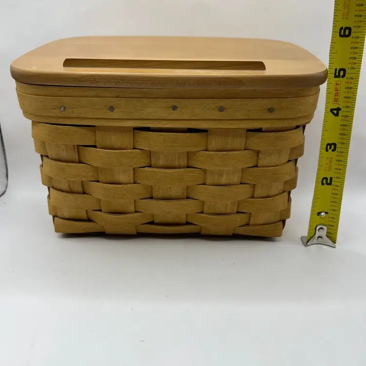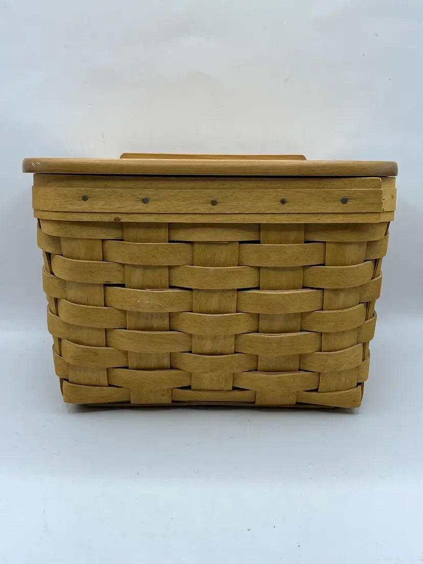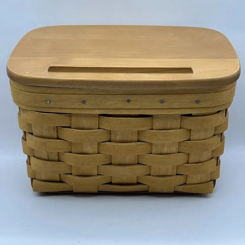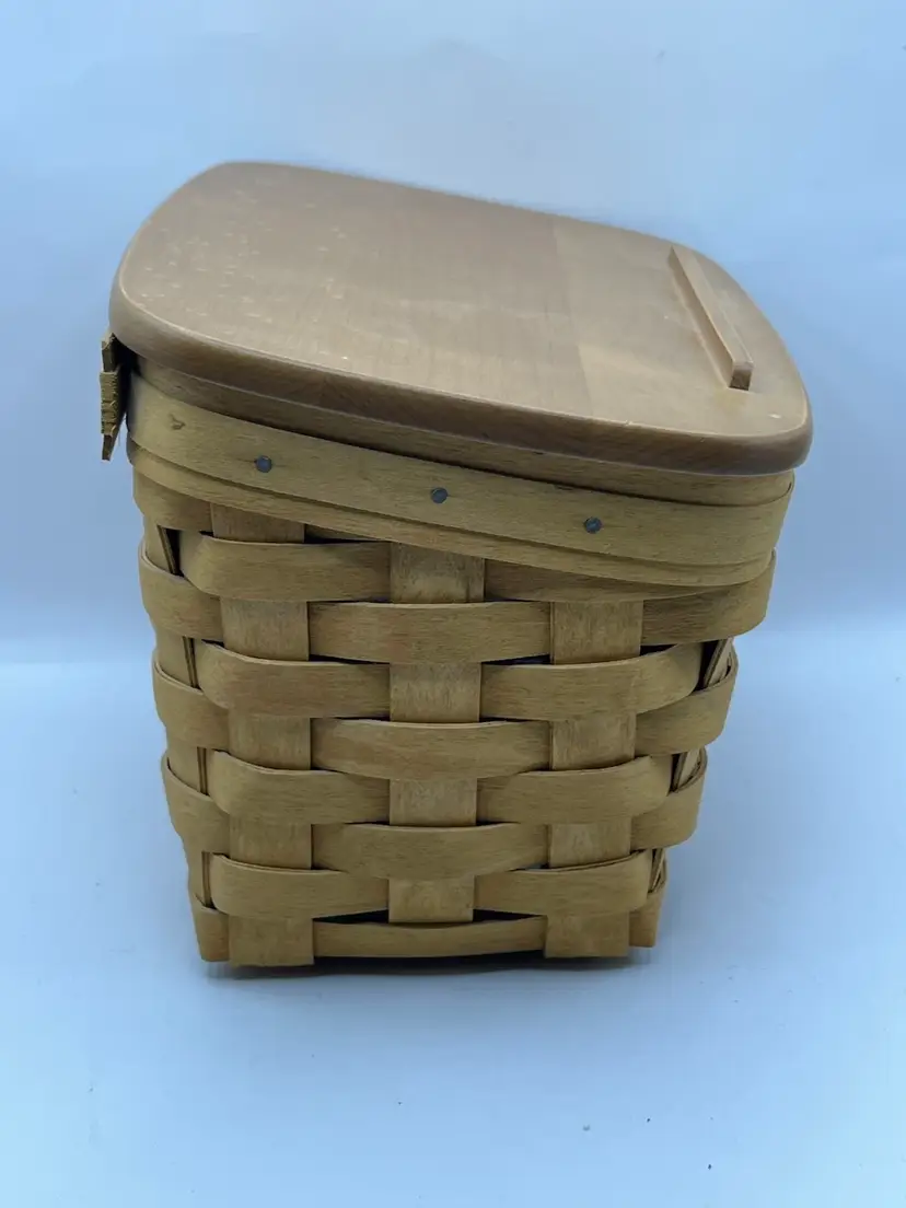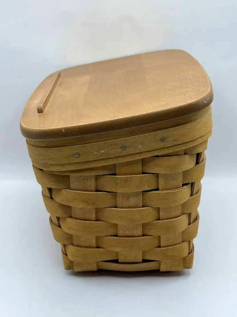 Minor marks on the basket. The wooden lid has some imperfections or spots. Not sure if it’s the natural wood or some kind of water damage.