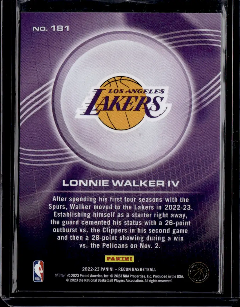 Grab this Lonnie Walker IV card from the 2022-23 Panini Recon series. A great pick for Lakers fans and basketball card enthusiasts.