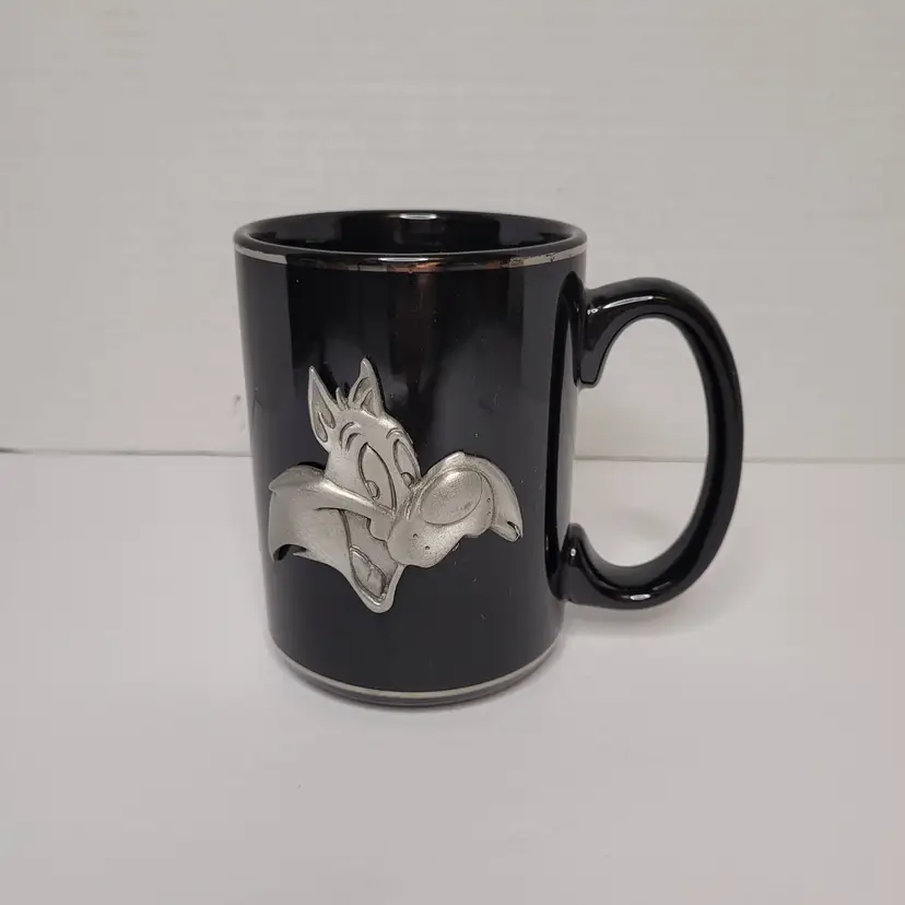 Looney Tunes Sylvester Rawcliffe Pewter Figure on Black Ceramic Mug Vintage 1996 Pre-Owned - Light wear from normal use See ALL photos for best description Contact me with any questions Ships fast