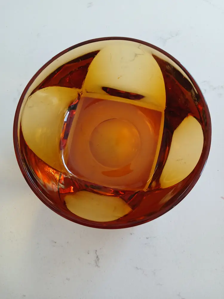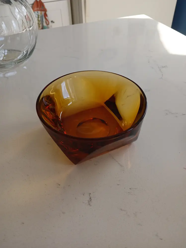 This MCM Amber glass dish is in good shape with minimal scratches.The color is a very deep shade of Amber. Please check all pictures they are part of the description!
