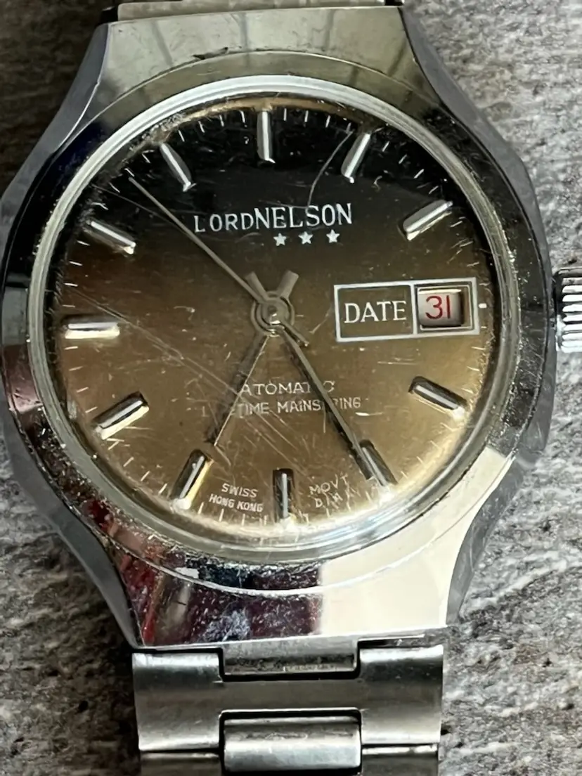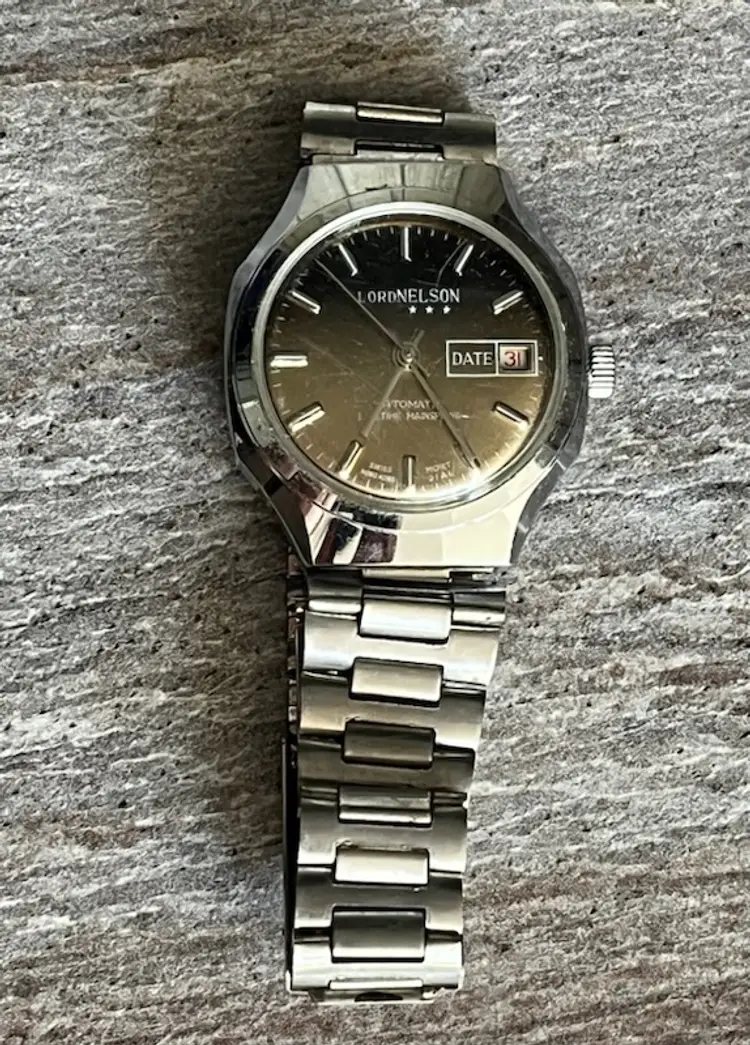 A Vintage Lord Nelson Men's Watch. Datomatic Calendar. Stainless Steel, Dust Proof Back.