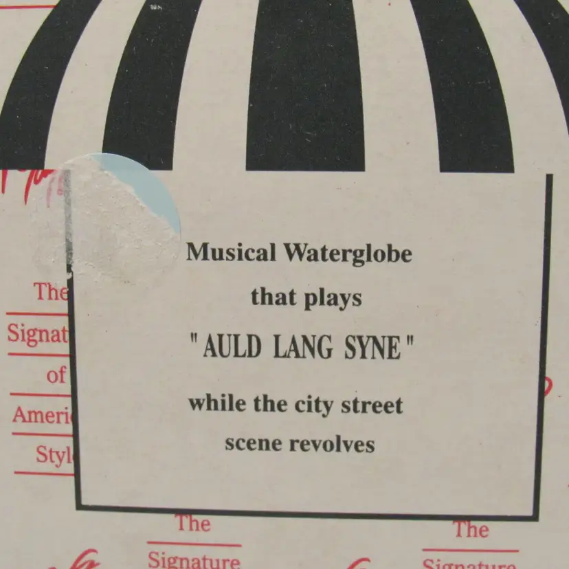 *Pre-owned - Vintage Collectible - Tested and Working - Circa @ 1999 -RN:99015 *It plays the Auld Lang Syne Melody, while the city street scene revolves. *Multicolor *Size: H7" x W 43/4"