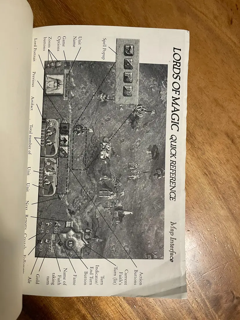 Lords of Magic Instruction Manuel Sierra 1997. Moderate exterior wear on edges and corner, first page has a map and it extends out past the book itself and has some edge wear/creases. Inside is free of any writing, overall solid condition, see pics.