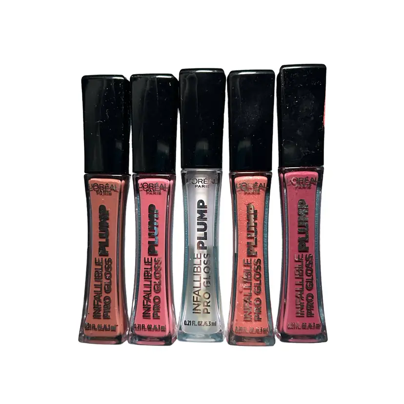Bundle includes 5 brand new L’Oreal Infallible Pro Gloss Plump lip glosses in a mix of wearable shades: