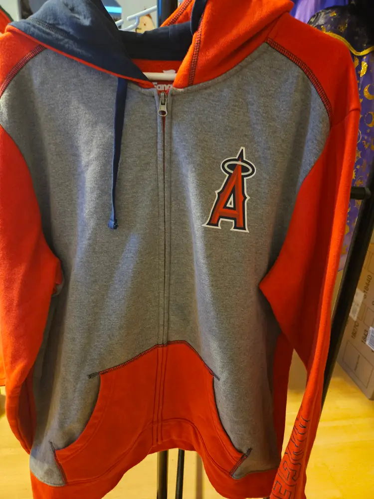 This red hoodie in size XL is perfect for male fans looking to show their support for the Los Angeles Angels.
