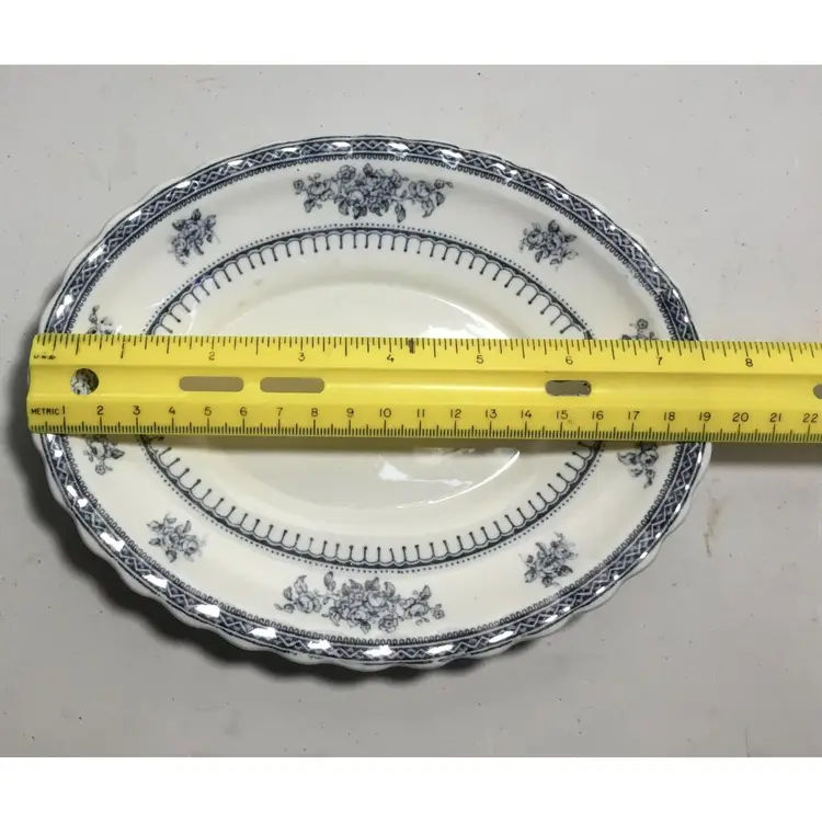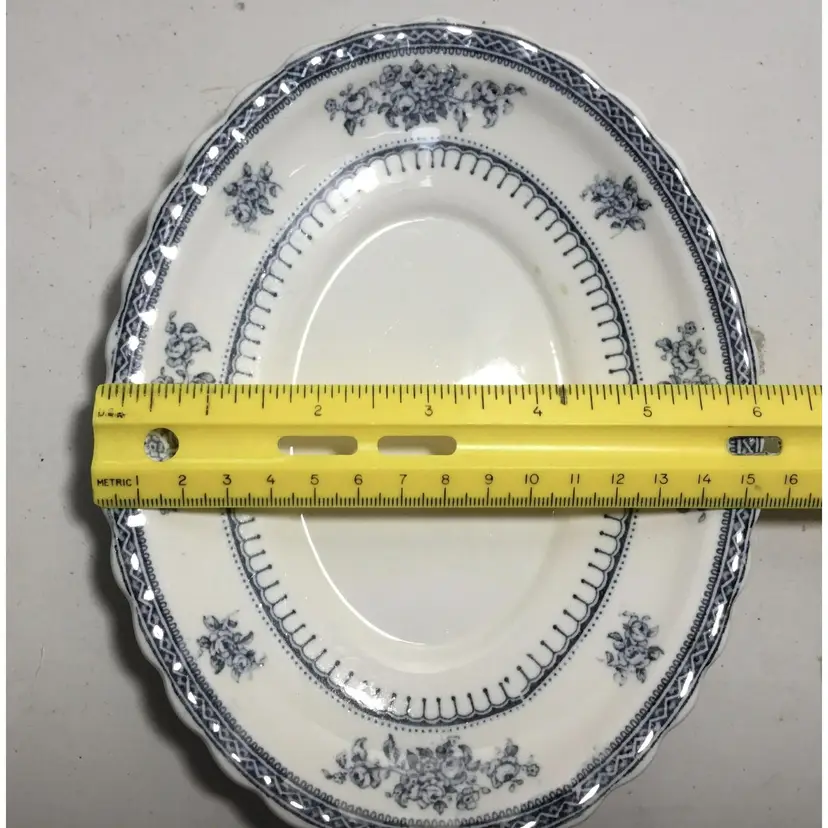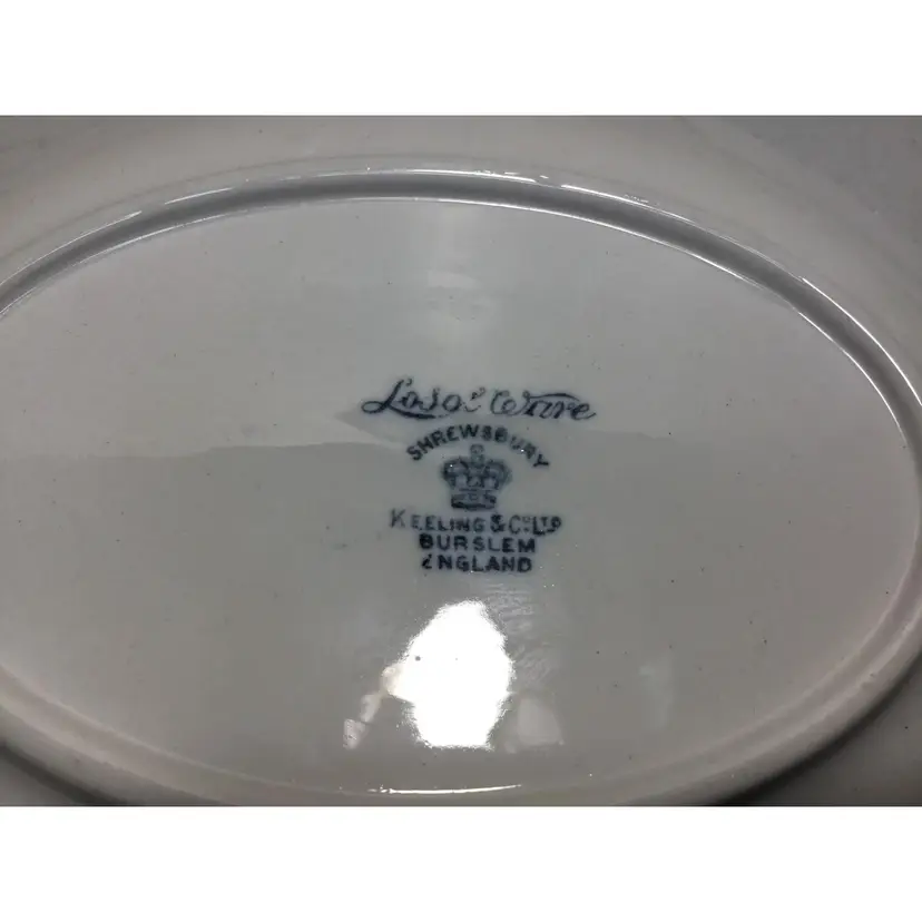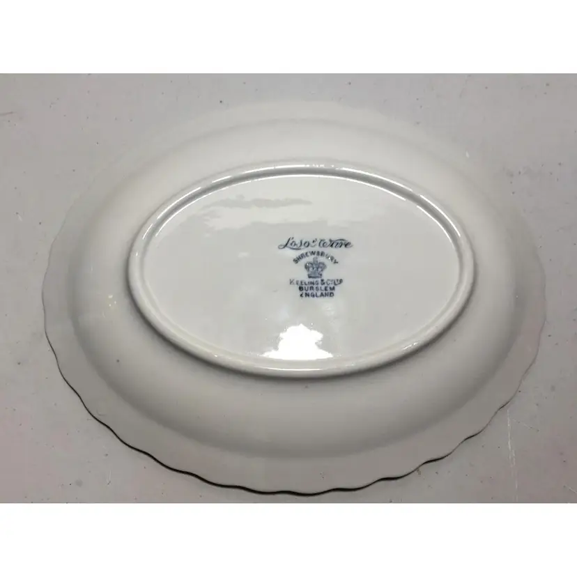 Keeling & Co - Losol Ware small platter, Shrewsbury Blue pattern. Orginally intended as platter for under the sauce boat. Could be used as intended or as trinket dish, display dish, under small planter dish, etc. Very good condition, no chips or crazing, 3 very small, pale brown stains on one side of front (See all photos for condition)