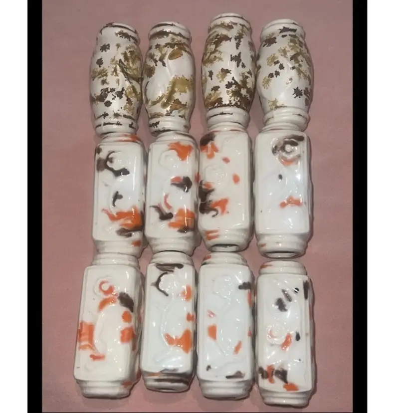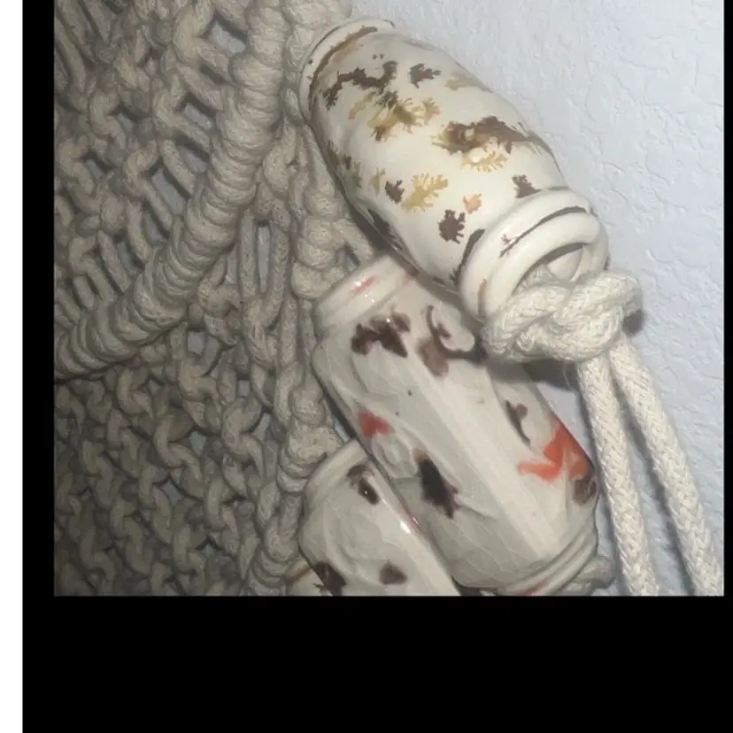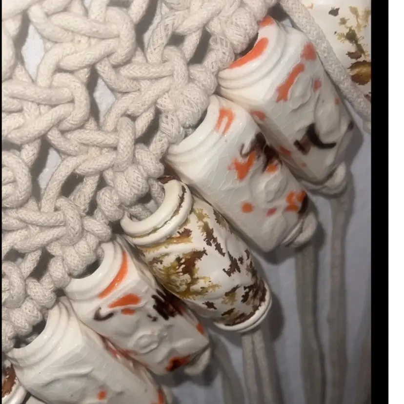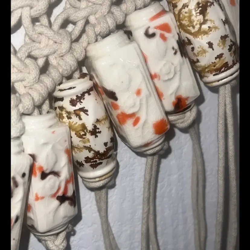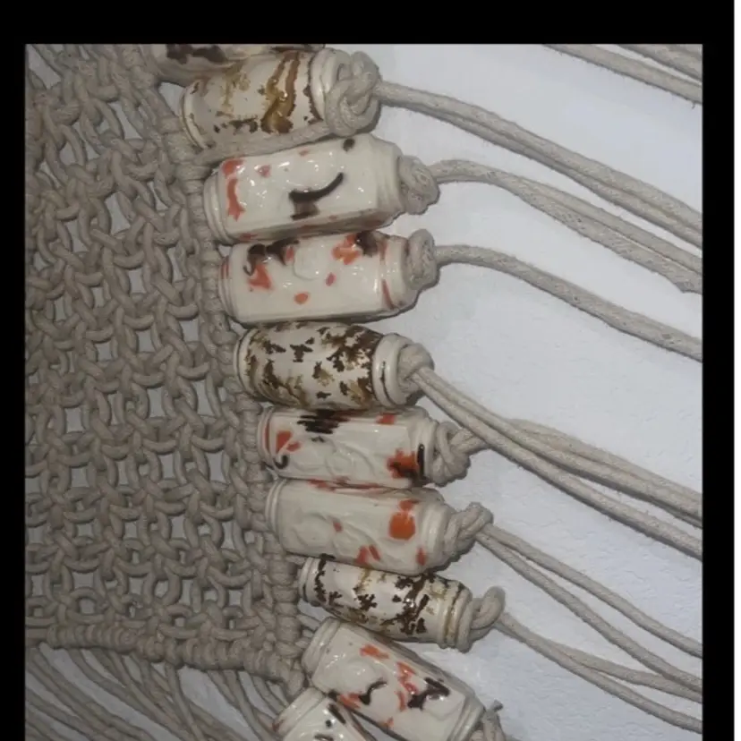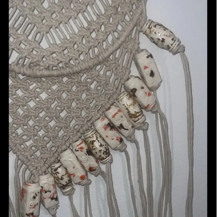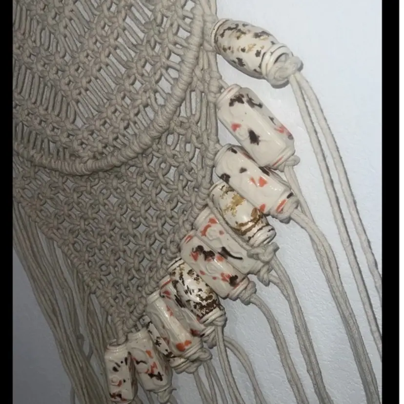 LOT 12 Vintage Macrame Beads Large Multicolor 3” long Approximately 1 1/2” wide Vibrant in color Please feel free to ask any questions or concerns Blessings, Bonnie & Darren :-)
