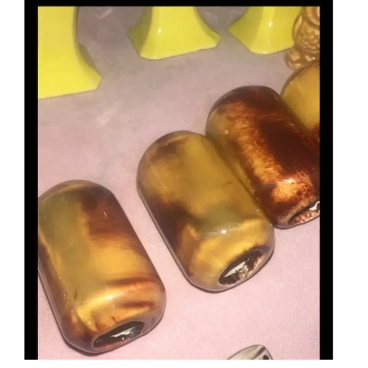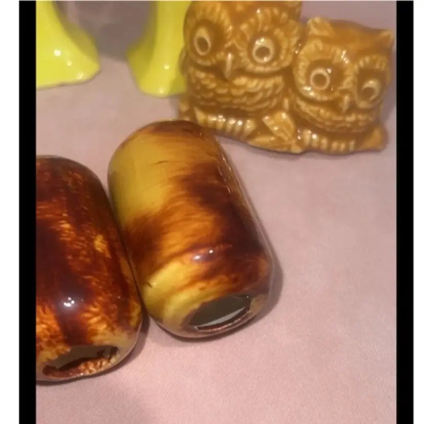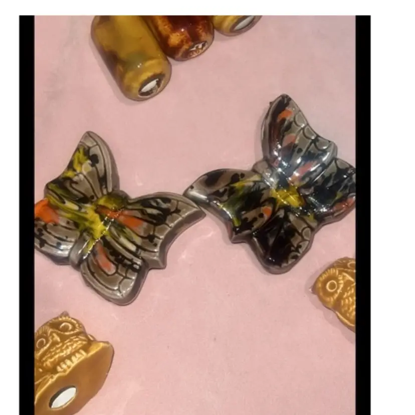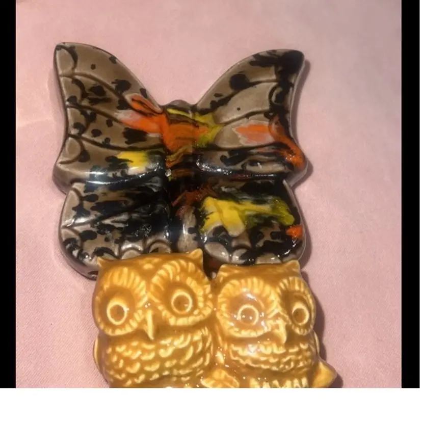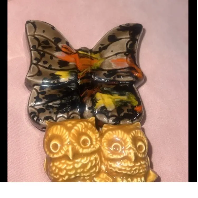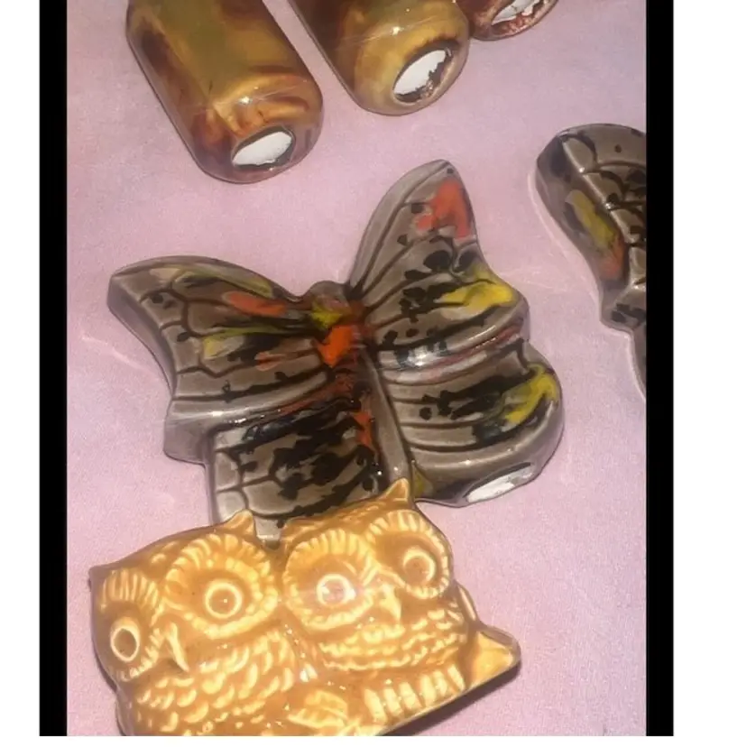 LOT 14Vintage Macrame Beads Large Multicolor 2 butterflies 4 owls 4 yellow pedestal sinks 4 cylinder round orange yellow brown Some tiny flea bites Vintage from the 70s some wear on them Please feel free to ask any questions or concerns before purchasing Thank you for your time and interest Blessings, Bonnie & Darren :-)
