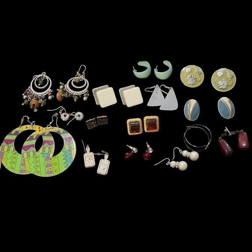 Interesting lot of earrings to wear, resell, or perhaps craft. All are wearable and there are some fun styles for you or your buyers.