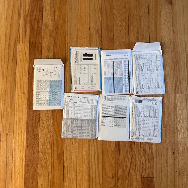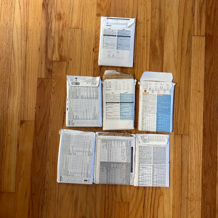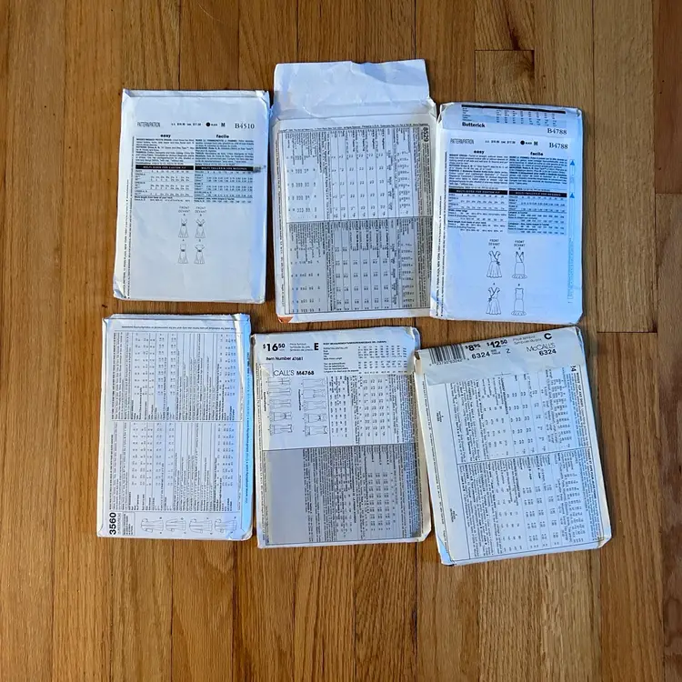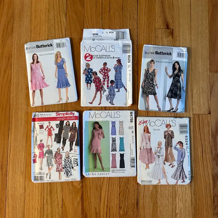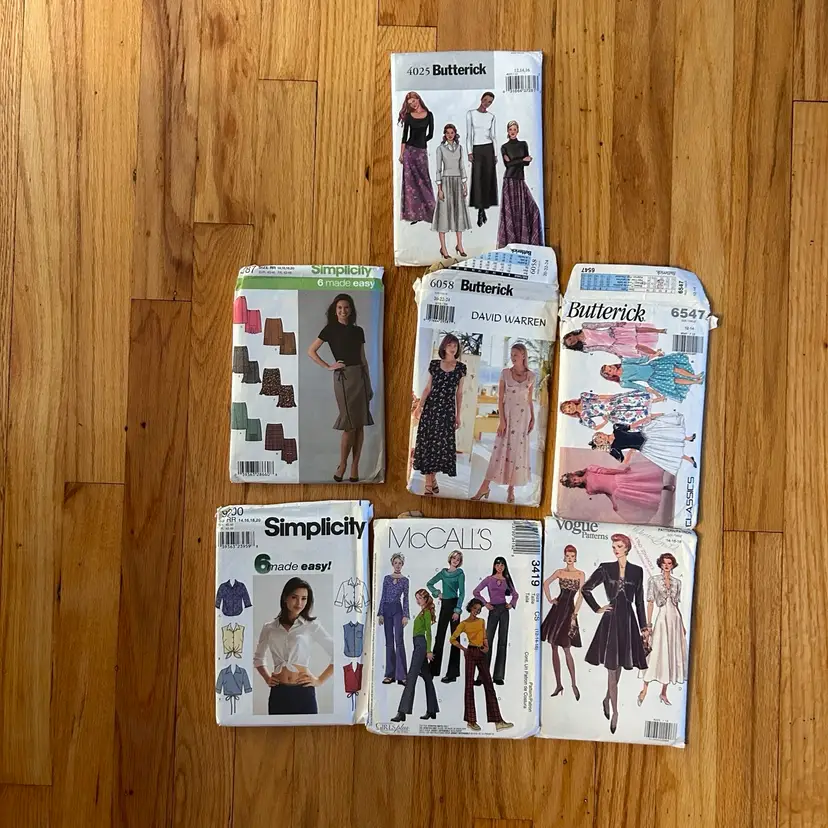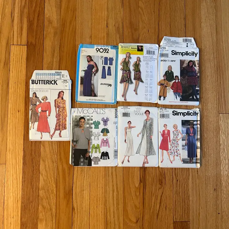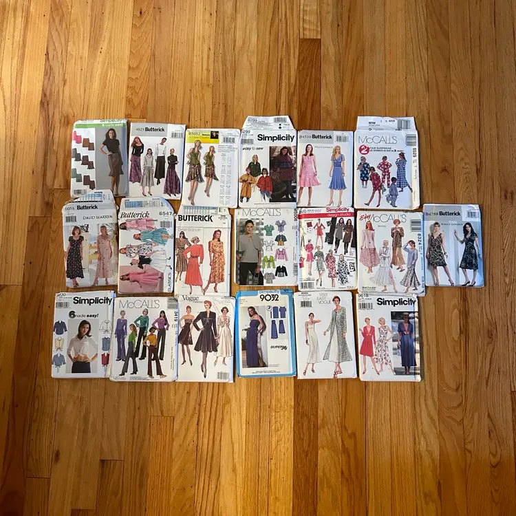 This is a lot of 20 used sewing patterns for women's clothing, including dresses and pants. The brands included are McCall's, Butterick, Vogue, and Simplicity, with a focus on the Vogue and Simplicity styles. These patterns are collectibles and date from 1930 to now, making them a great find for sewing enthusiasts.