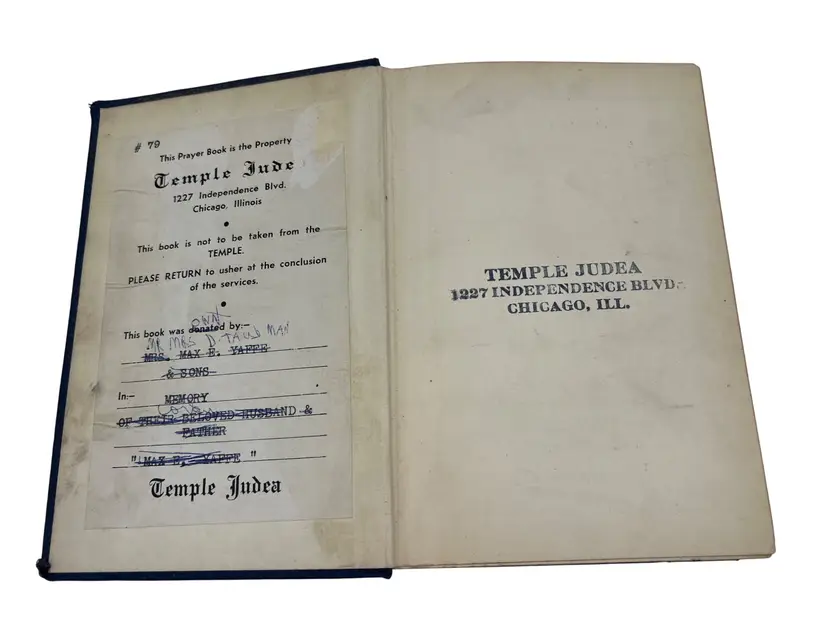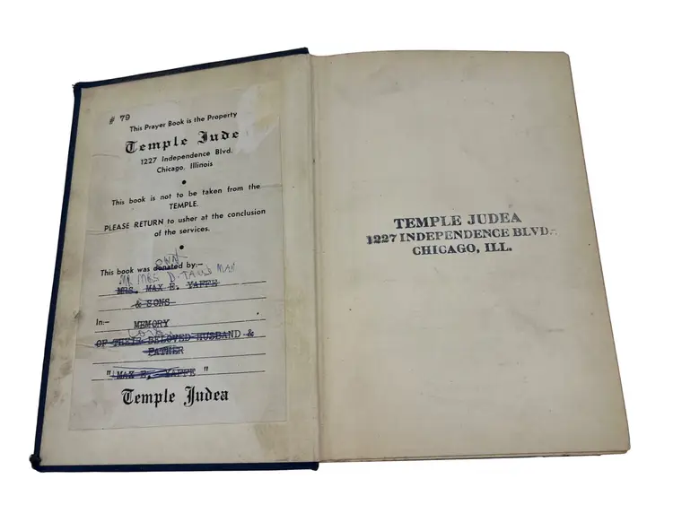 Some shelf wear, library/temple stamps (“Temple Judea, Chicago”) and owner's name, corners and edges show use. No rips or tears to pages noted. See pictures for further details on condition.