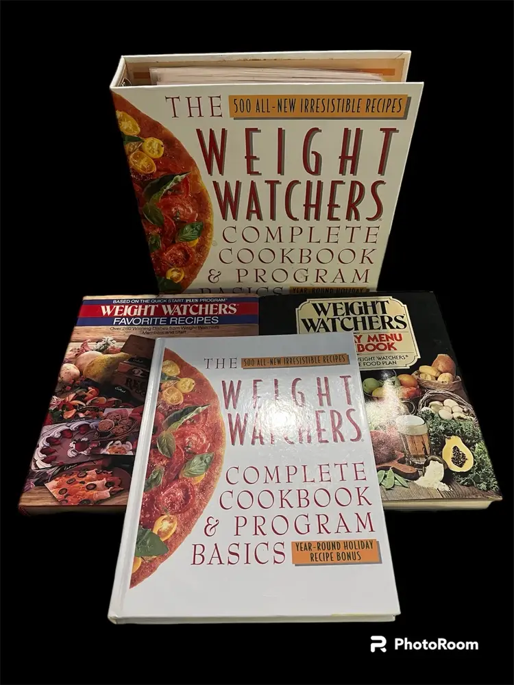 The lot includes The Weight Watcher’s complete cookbook and program basics in both hardback and hard 3 ring binder. Also included is Weight Watcher’s 365 day menu cookbook and Weight Watcher’s favorite recipes.