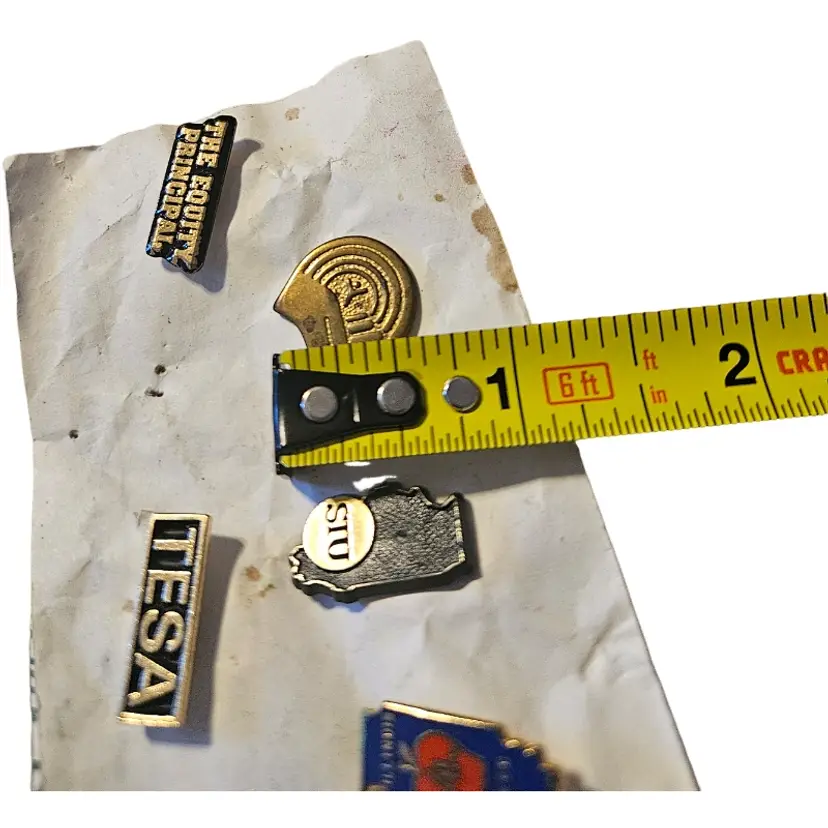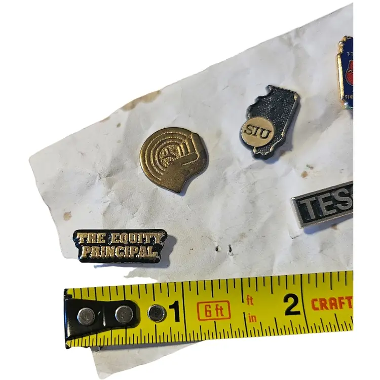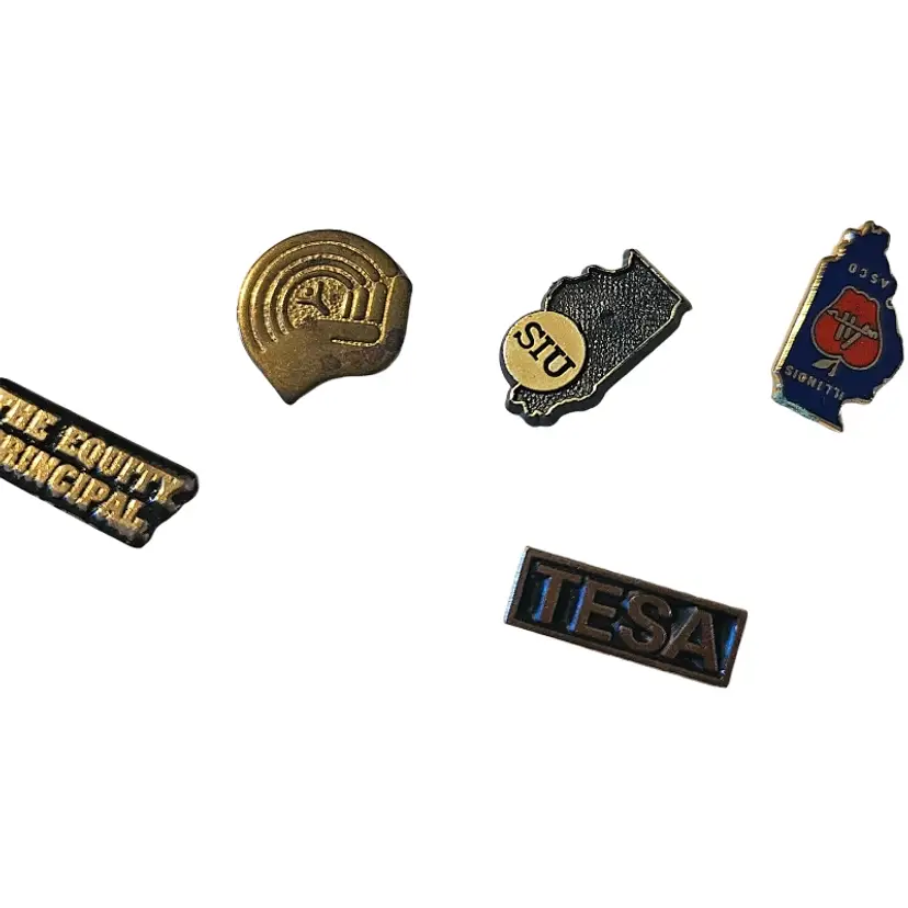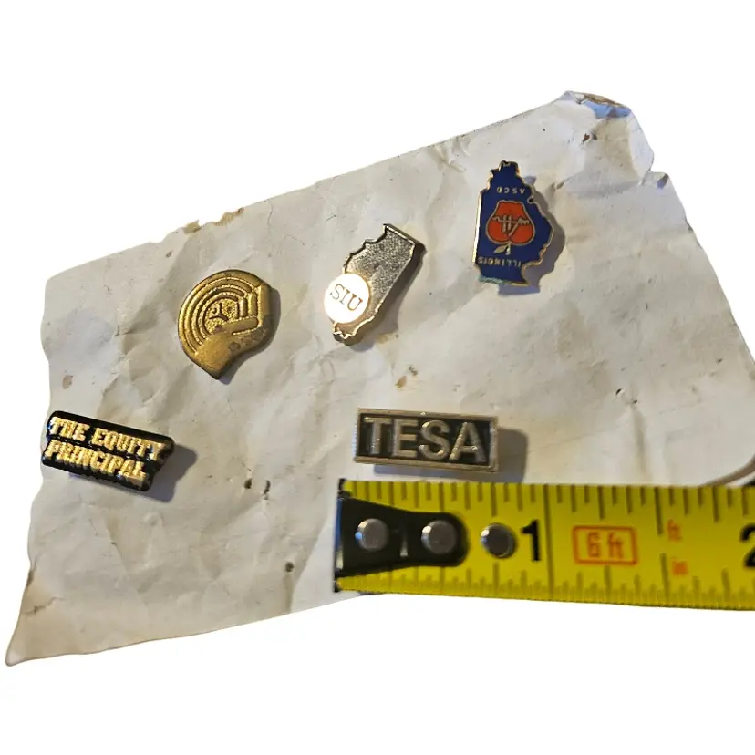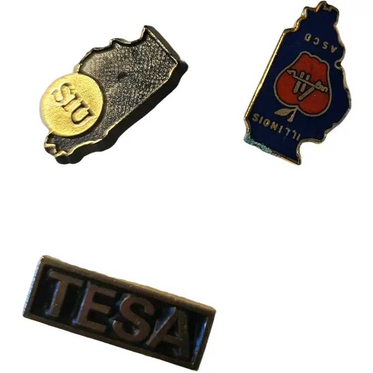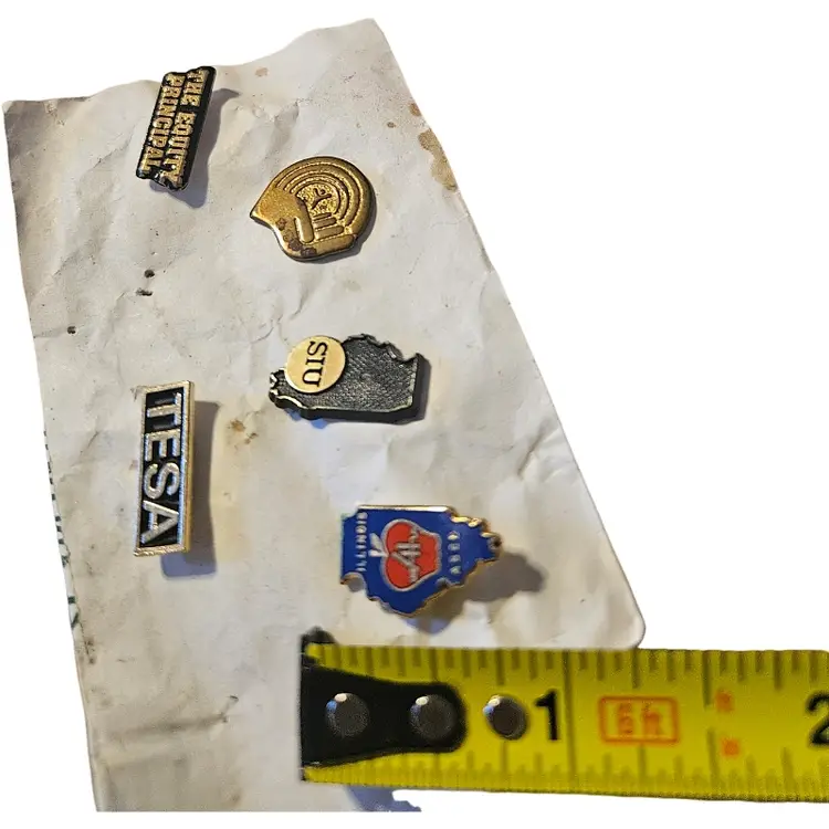 Set of five Illinois themed pins with gold and blue accents. Features unique designs and logos.