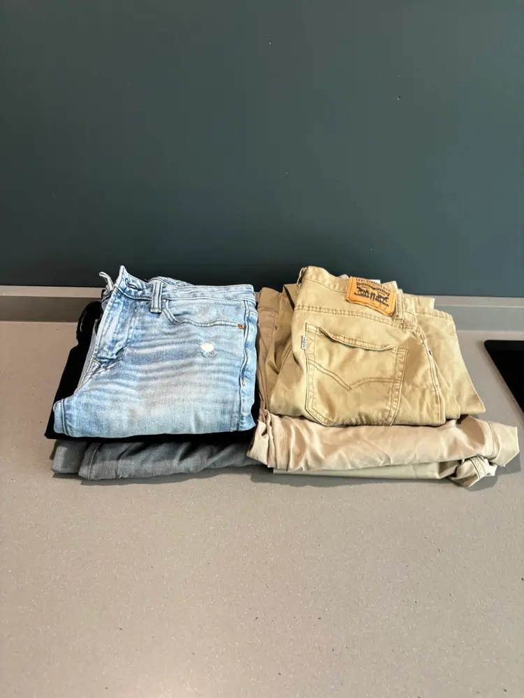 Included in this lot are 10 pairs of pants one sweater and one shirt. Ships from the East Coast of North Carolina.