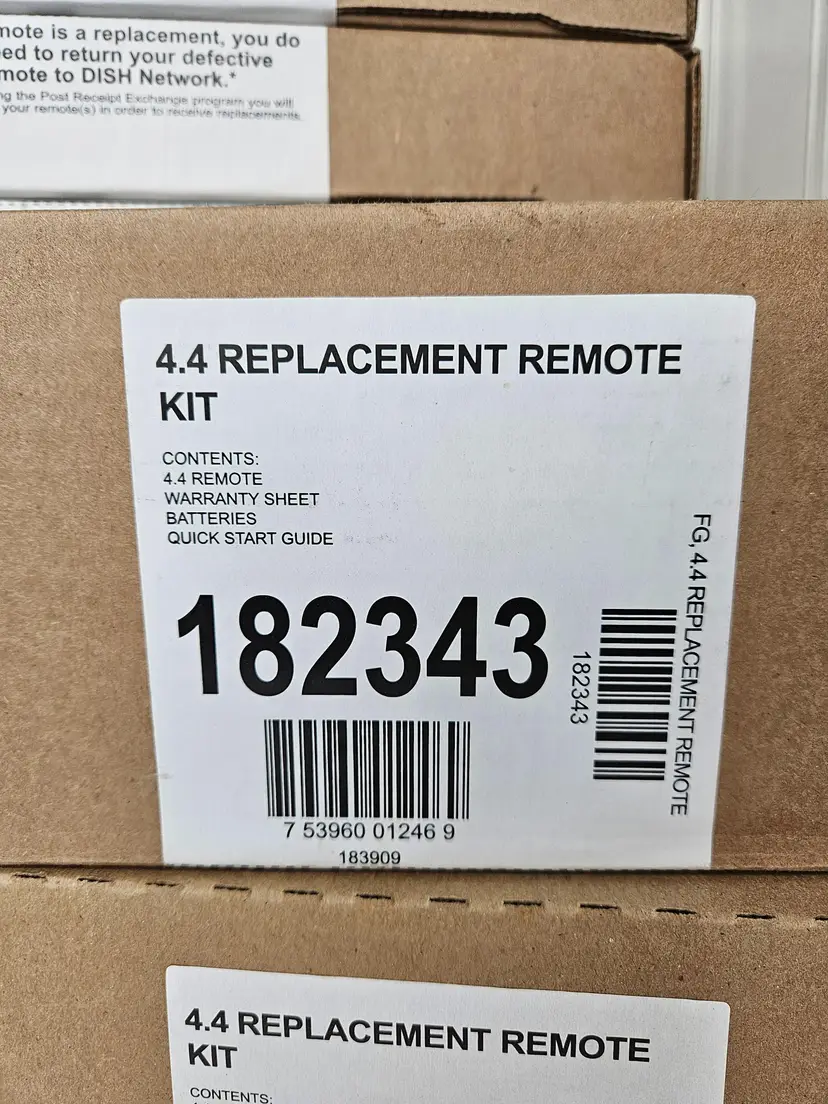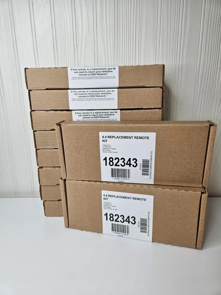 You are buying a lot of 10 new, unopened DISH Network 4.4 Replacement Remote Kit #182343.