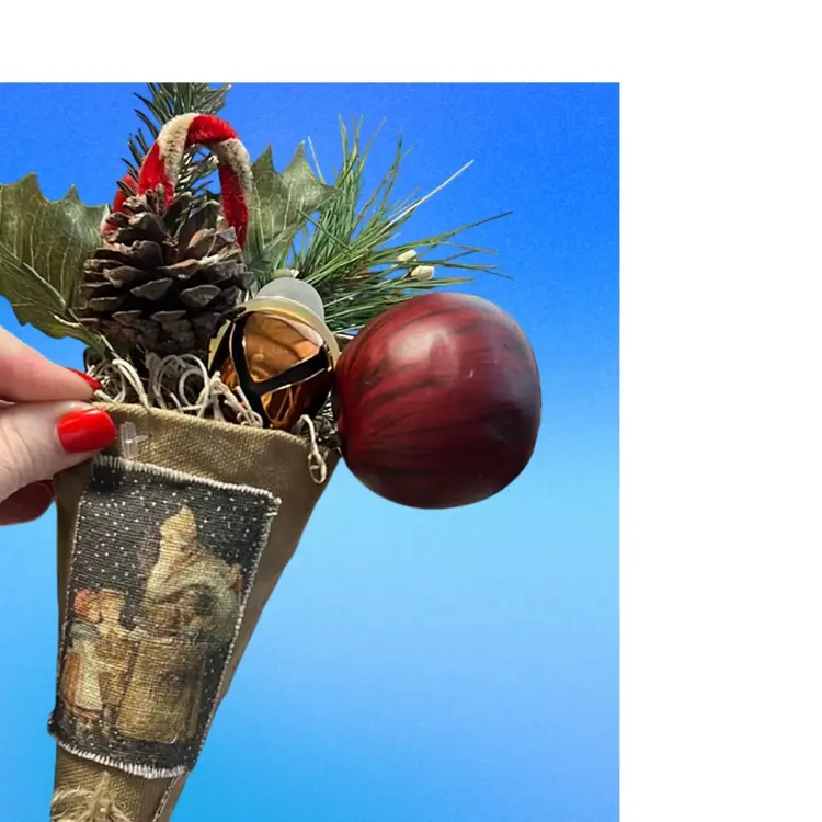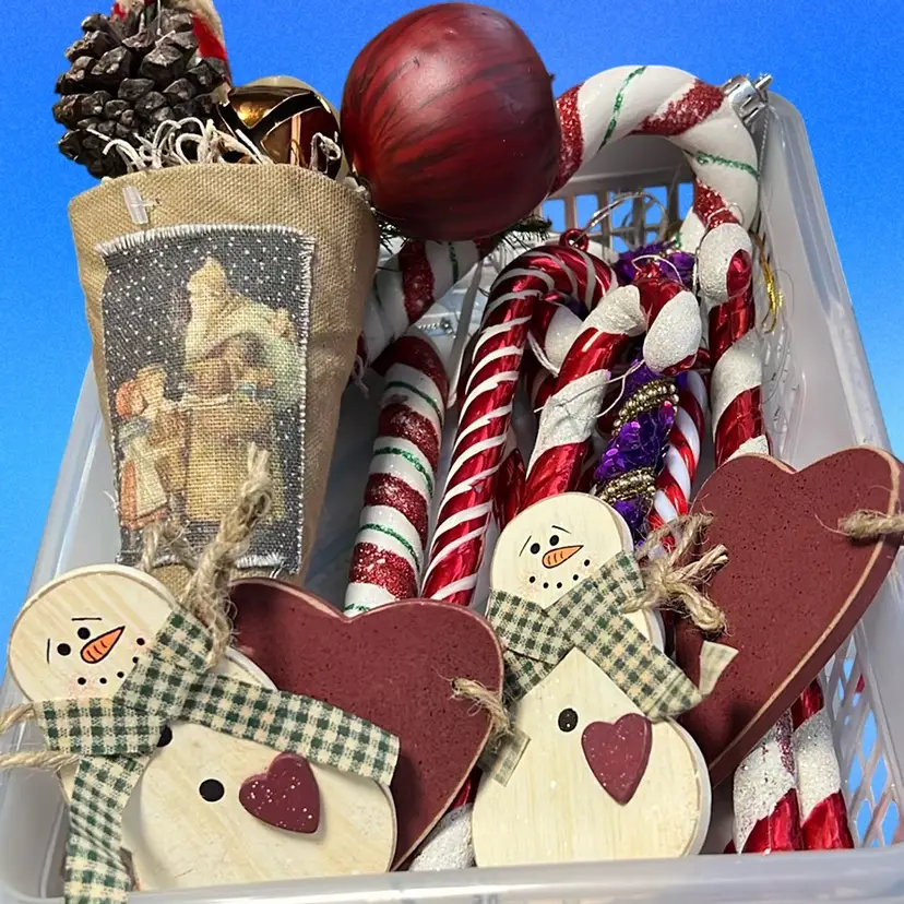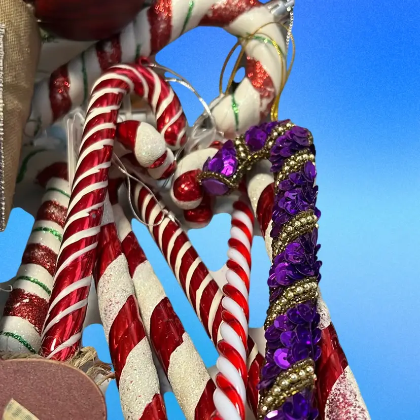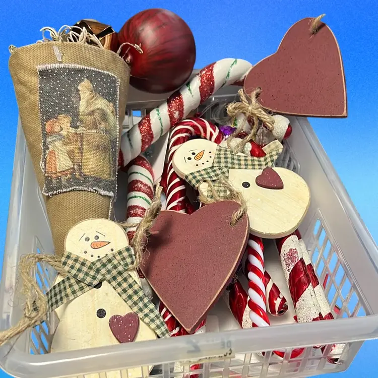 Lot Of 10 Glass & Plastic Candy Canes, Small Primitive Cone, One Small Snowman Swag In A Primitive Basket - Free Shipping Christmas