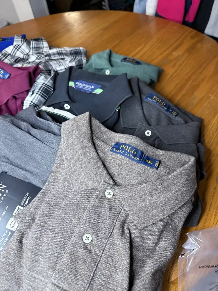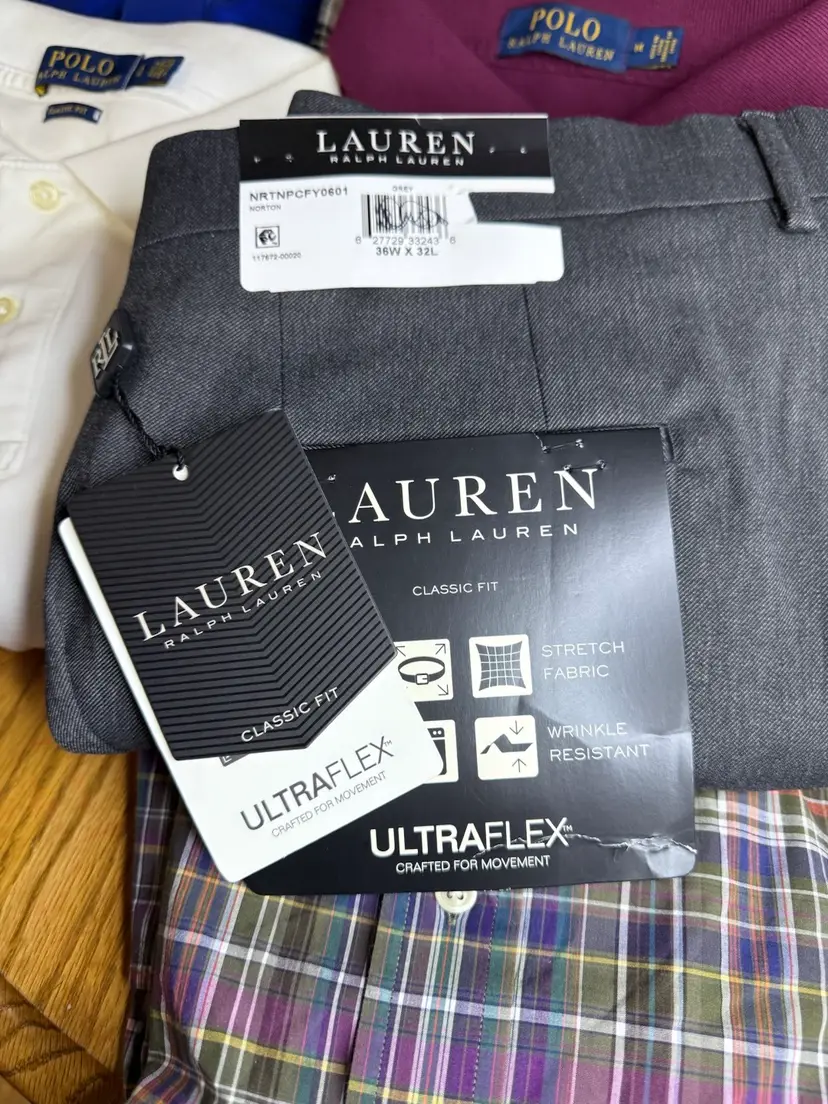 1- NWT Lauren Ralph Lauren Slacks 36x32 1- Ralph Lauren Green Polo M 1- Ralph Lauren Long Sleeve Polo XXL 1- Ralph Lauren Charcoal Grey Polo M 1- Polo Golf Polo L 1- Ralph Lauren Polo Blue L 1- Ralph Lauren Black & White Button Up L 1- Ralph Lauren Polo White L 1- Ralph Lauren Polo Maroon M 1- Ralph Lauren Multicolor Button Up XXL = 10 Items Total