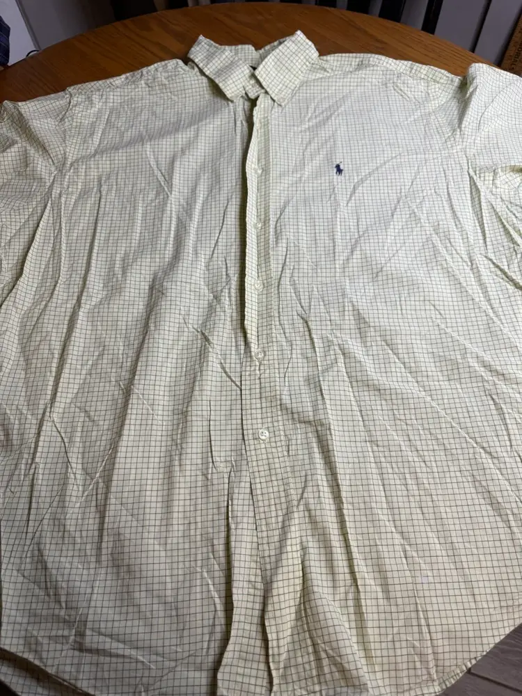 1 - L Maroon Button Up 1 - XL SS Button Up Yellow 1 - Blaire L Plaid Button Up 1 - Polo L Blue, Yellow Vertical Striped 1 - Polo Solid Grey M 1 - Polo Solid Green S 1 - Polo Red, White Striped L 1 - Classic Fit Solid Yellow Button Up L 1 - Big Shirt Plaid XXL Purple Green 1 - Black White Striped Polo L