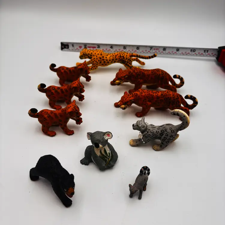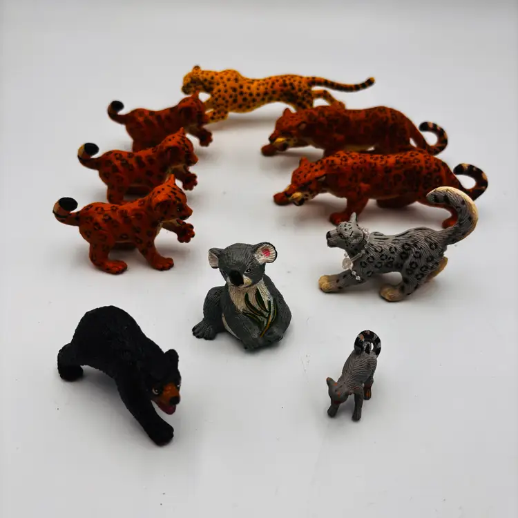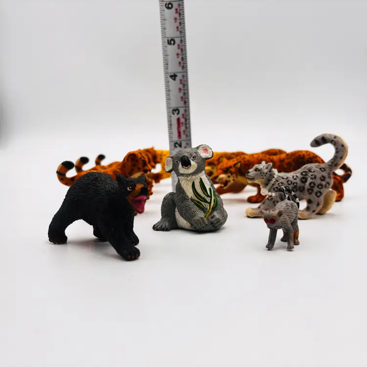 Features: The koala is marked "WWF" and the smallest figurine (lemur?) is unmarked. All but two are marked "Safari Ltd".