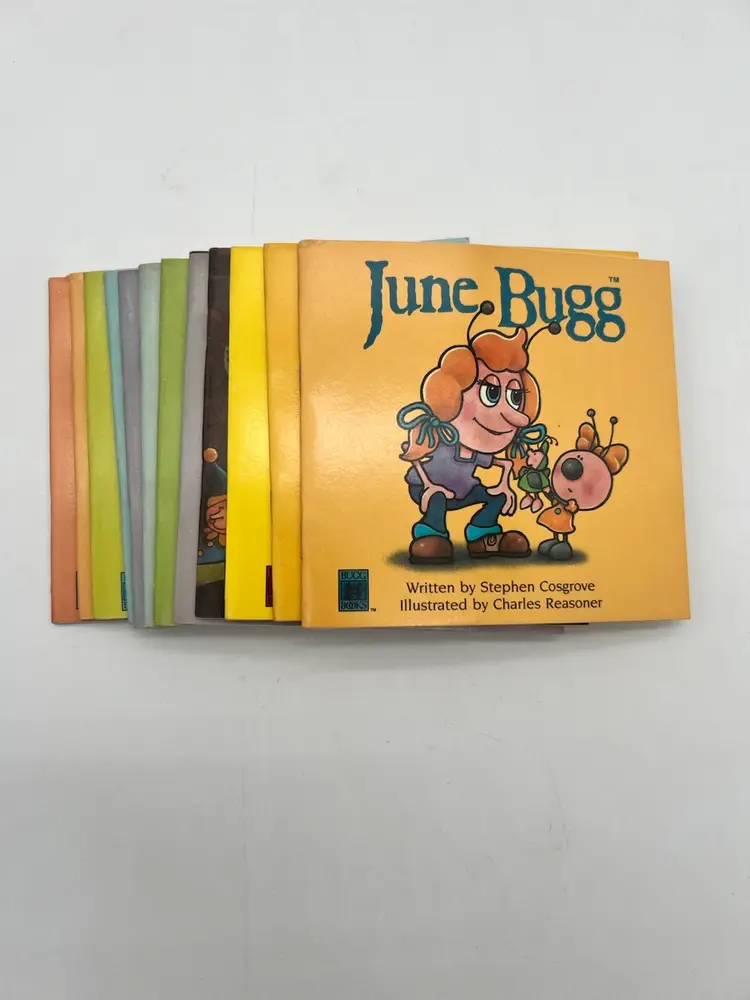 Very good vintage condition. This is a lot of 12 paperback children’s books. This is most of the”Bugg Books” series, if not all of them. The series is by Stephen Cosgrove.
