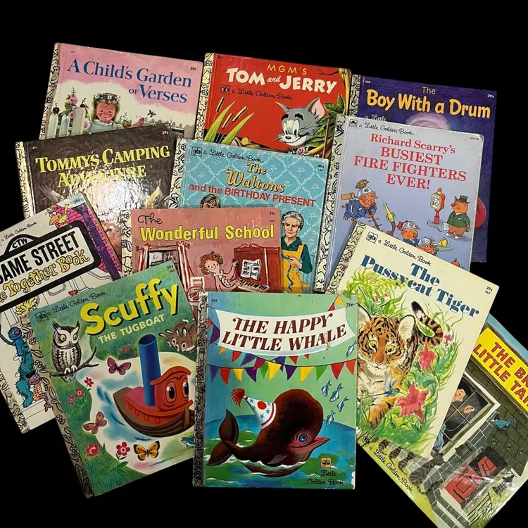 Each book is approximately 8” x 6.75”. These are in used vintage condition. Some are in better condition than others. Some condition issues seen in different books are as follows: the plastic coating on the cover pulling up, loose binding, wear/creasing, rippling to the cover, and/or writing on the interior cover in the “this book belongs to” section.