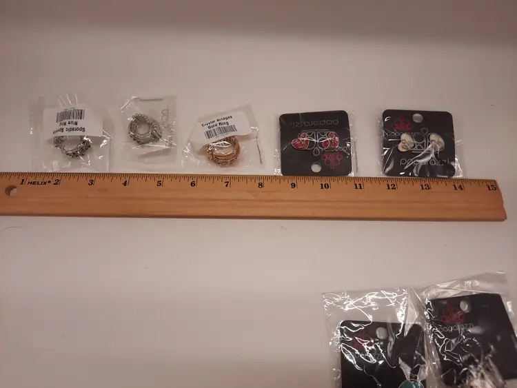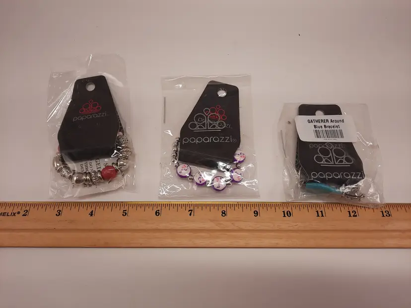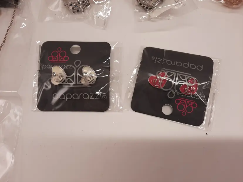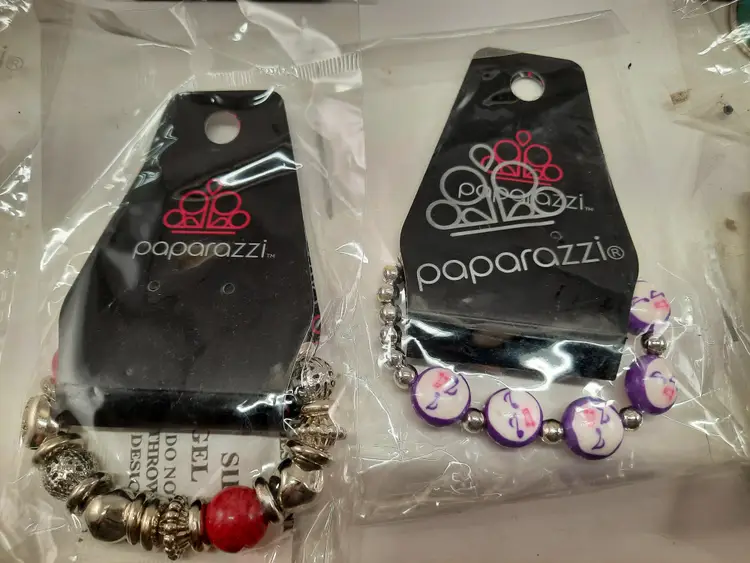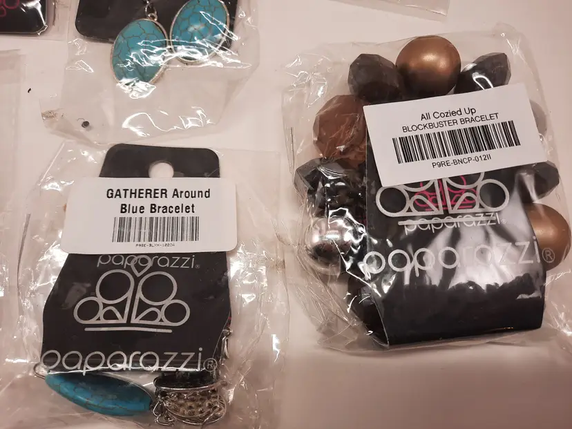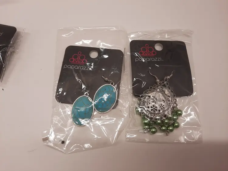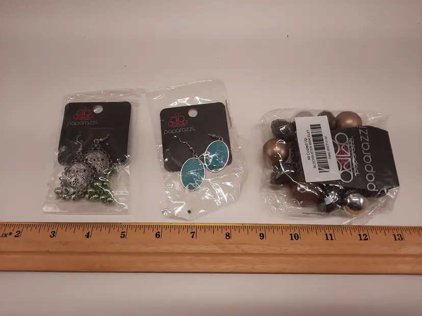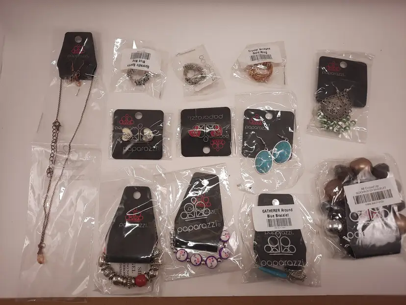Lot of 12 pieces of NEW Paparazzi Jewelry. Lot includes 3 rings, 1 necklace/earring set, 3 bracelets, and 5 sets of pierced earrings. New in their original packaging. see pics for more info. Thanks!