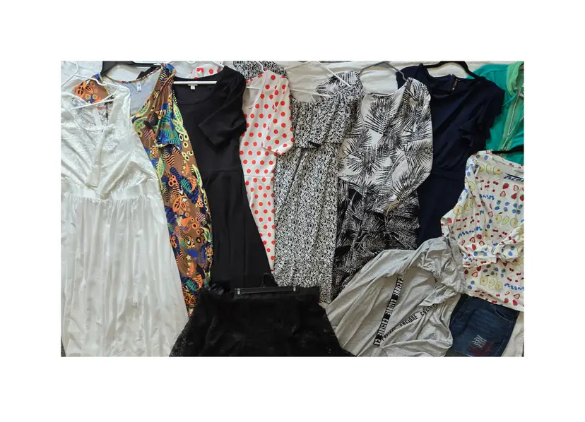 Some New with tags,sizes 20 2XL 3XL 5XL Lularoe Dress polka dot Lularoe Dress black Lularoe black and white dres Lularoe black and white dress New with tags weekends Chicos green jacket New with tags Misoul white lace formal dress New with tags old navy emrboidered flag denim shorts It's tropical print tunic dress (light fading) Serengeti novelty fruit print top Misoul navy ruffle dress Apostrophe lace skirt Cacique sleep midi hooded robe