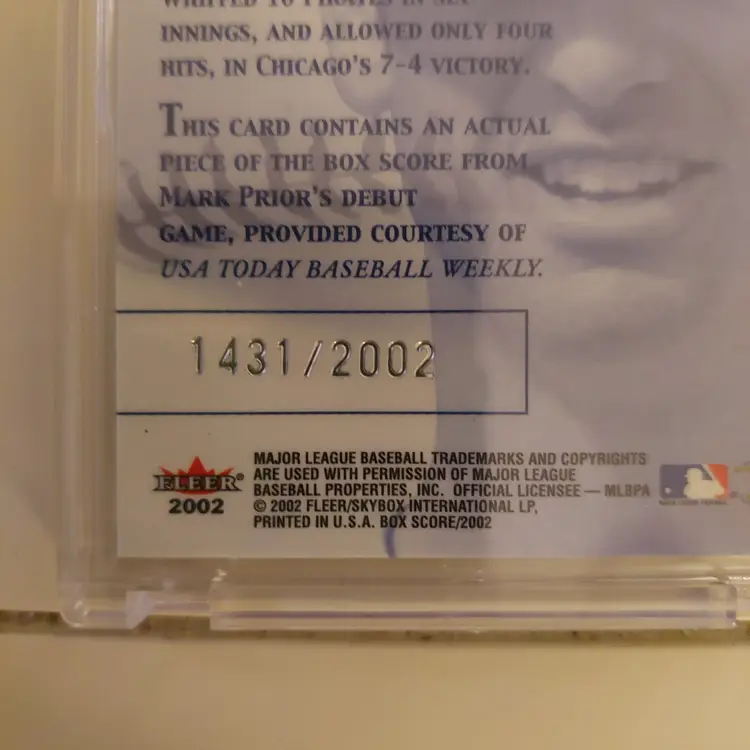 Mark Prior box score debut #1431/2002. Jake Wong / Porter Hodge #971/2024.