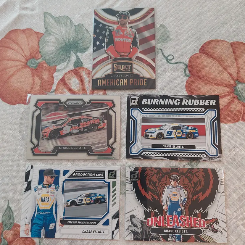 2024 Panini Select American Pride Insert. 2024 Panini Prizm rides. 2024 Donruss Unleashed Insert. 2024 Donruss burning rubber Insert. 2024 Donruss production line Insert.