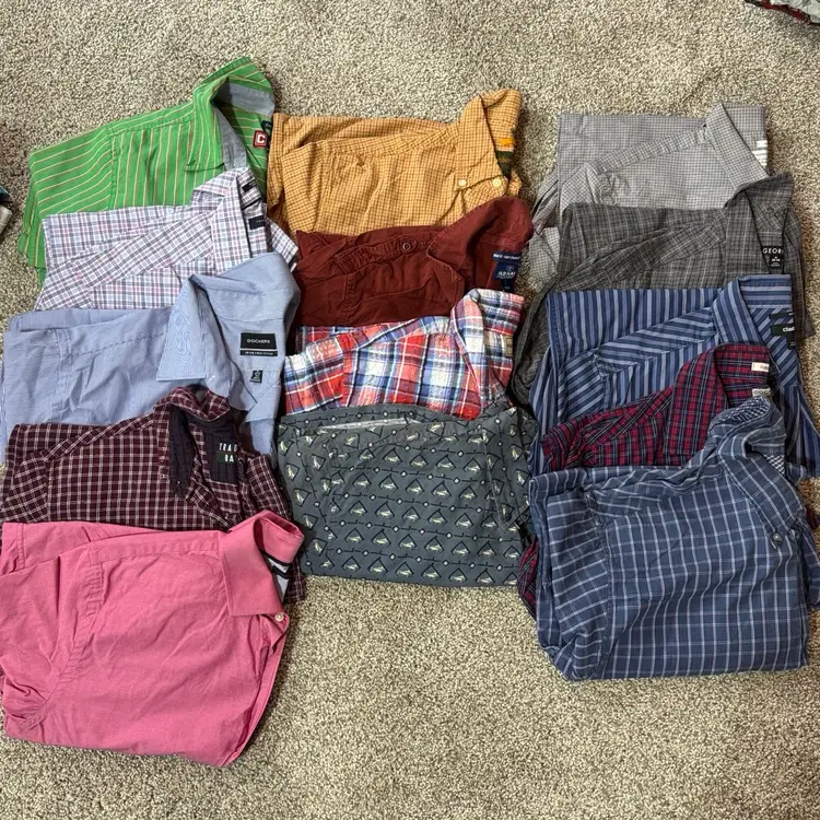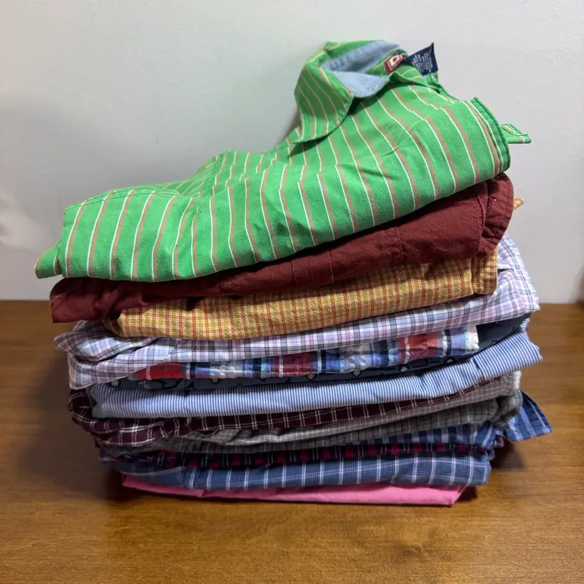 Lot Of 14 Mens Button Up Dress Shirts Variety of sizes Brands: Tommy Hilfiger, Chaps, Newport Blue, Old Navy, Timberland, Izod, Dockers, Claiborne, Trader Bay All are pre-owned