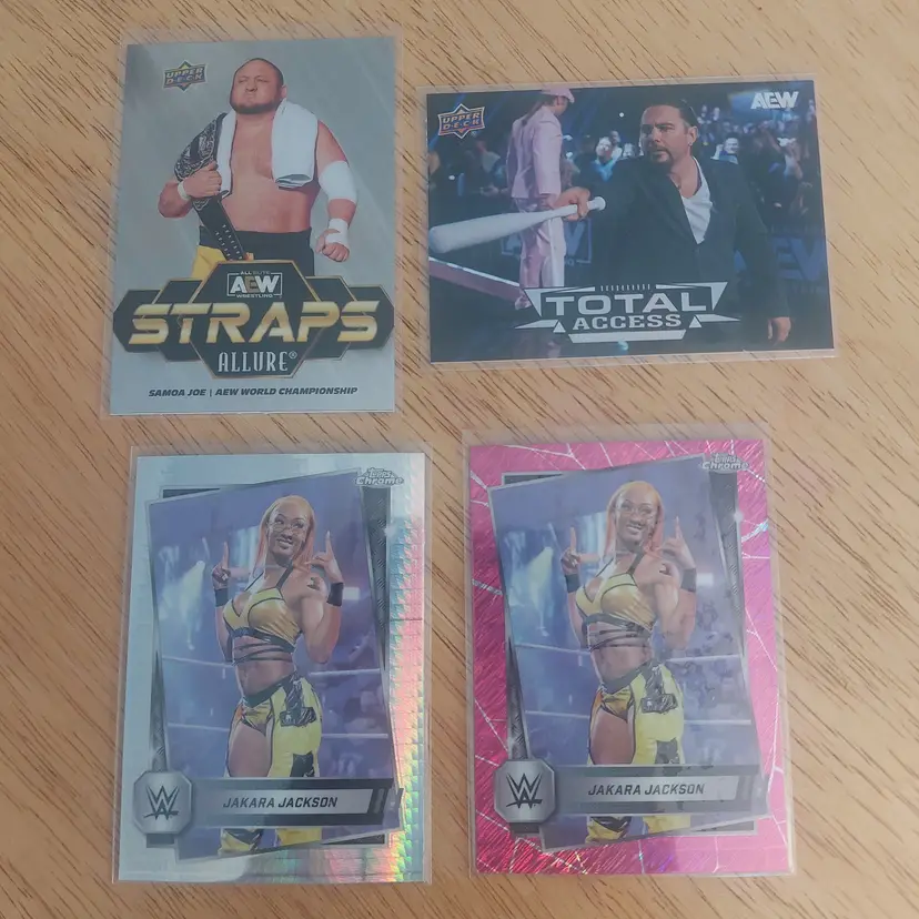 Samoa Joe 2024 Upper Deck AEW Allure straps Insert. Matthew Jackson 2025 Upper Deck AEW total access Insert. Jakara Jackson: 2025 Topps Chrome pink Parallel. 2025 Topps Chrome Prism Parallel.