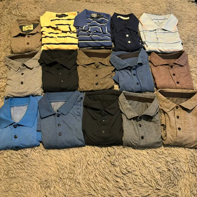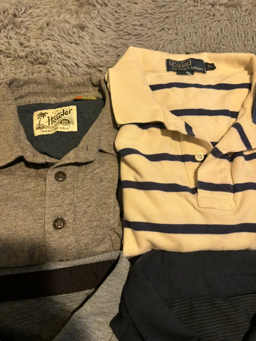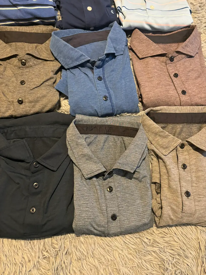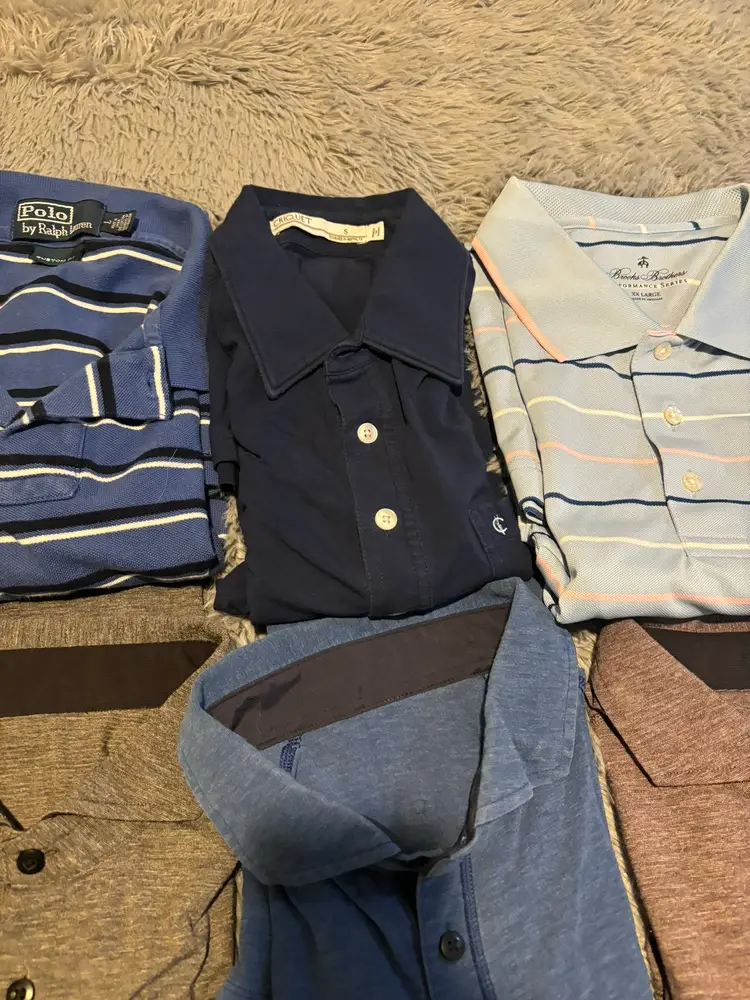 All mens clothes 10 Lululemon short sleeve polo shorts 2 Polo Ralph Lauren short sleeve shirt Rugby style 1 Howler Bros short sleeve polo 1 Criquet short sleeve polo 1 Brooks Brothers Performance short sleeve polo