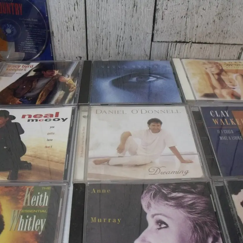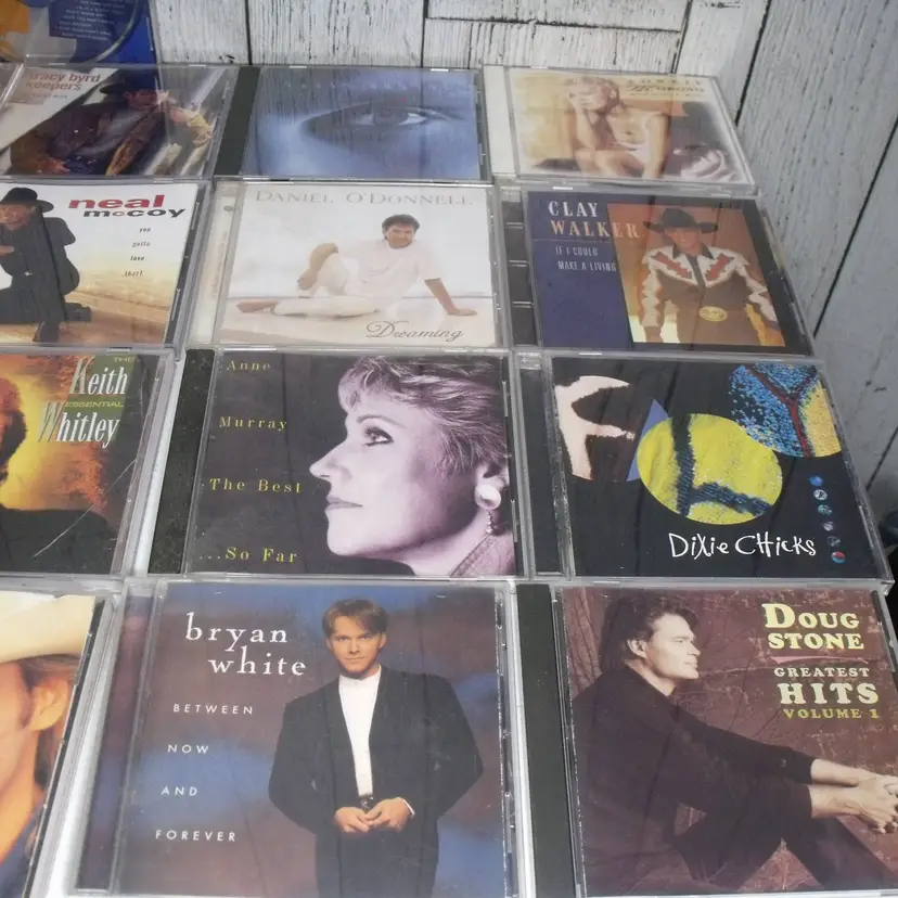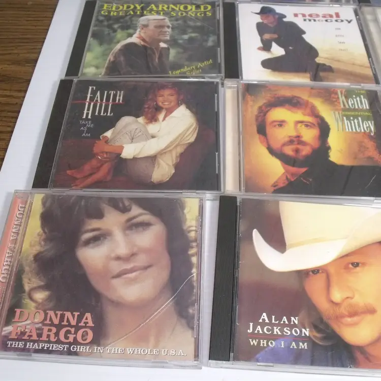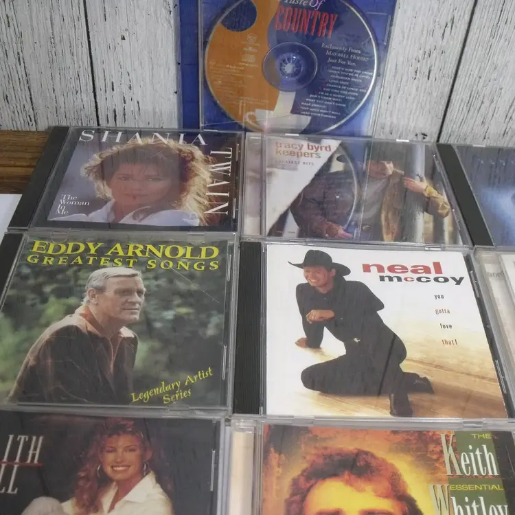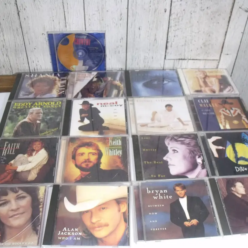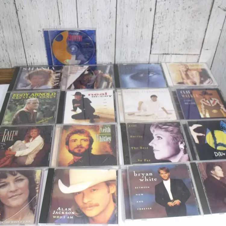This lot of 17 country music CDs features artists such as Alan Jackson, Shania Twain, Garth Brooks, Bryan White, Doug Stone, Dixie Chicks, Anne Murrary, Clay Walker, Daniel O'Donnell, Lorrie Morgan, Tracy Bird, Neal McCoy, Keith Whitley, Eddie Arnold, Donna Fargo and Faith Hill The CDs are in English language and come in standard jewel cases. This collection offers a variety of country music albums from different artists in the genre, making it a great addition to any country music fan's music library.