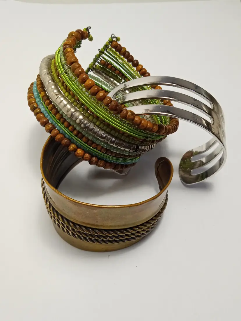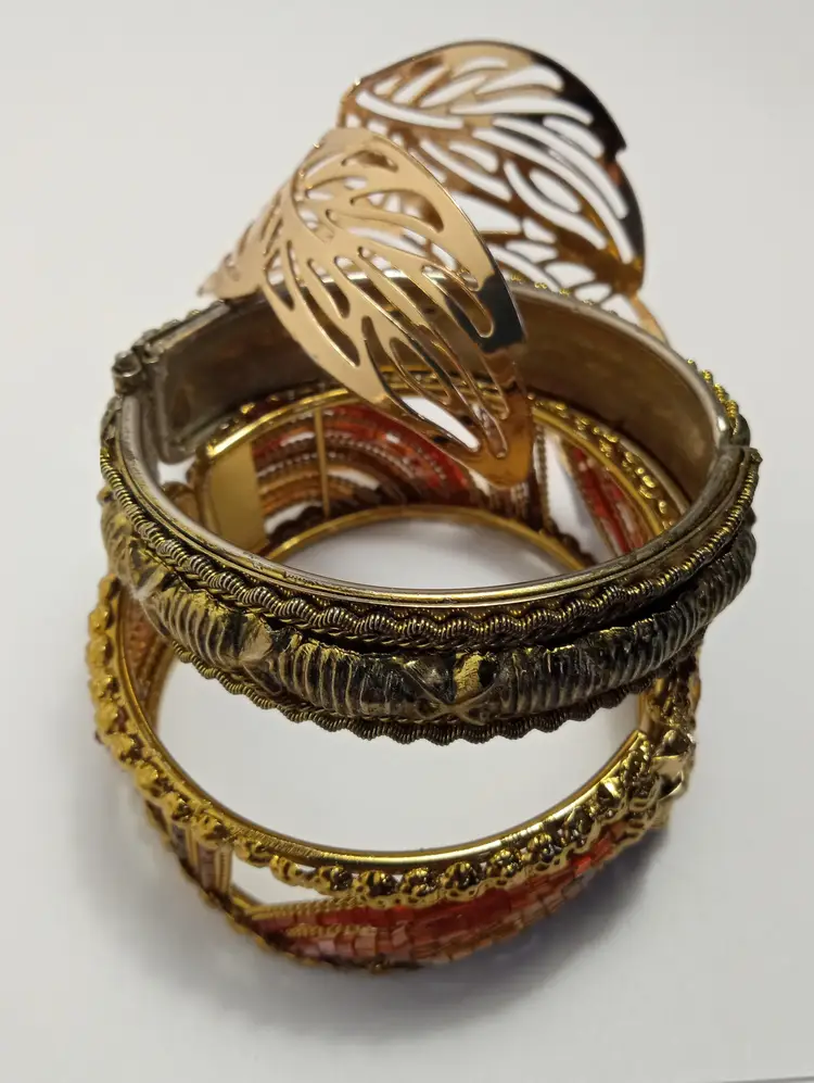 Lot of 18 Bangles and Cuffs. $1/per piece. Sorry about the Shipping cost, but since this is a quite big pile of bracelets, the best I can do is to fit them into the Priority Padded Flat Rate Envelope. This is the cheapest option. **Also, if I can fit more bracelets, I will do it for Free. I'm sure I can find a couple more of them.