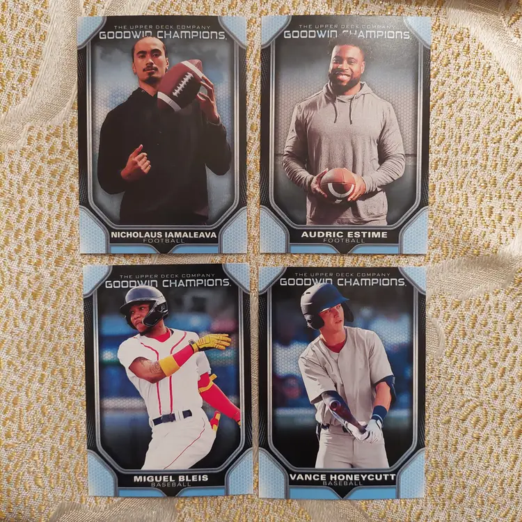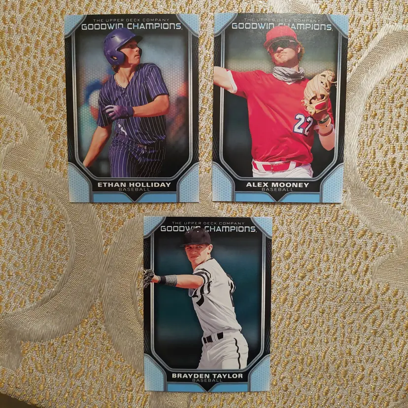 Baseball- Miguel Bleis card 52, Vance Honeycutt card 56, Ethan Holliday card 29, Alex Mooney card 60, Brayden Taylor card 48.