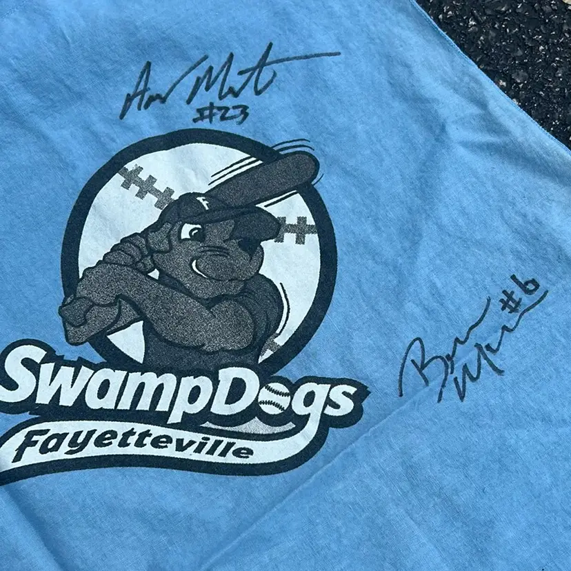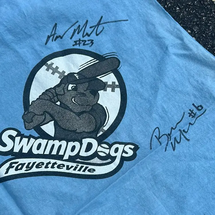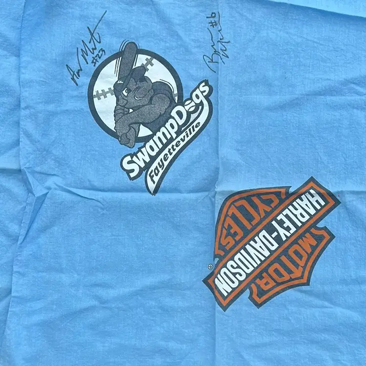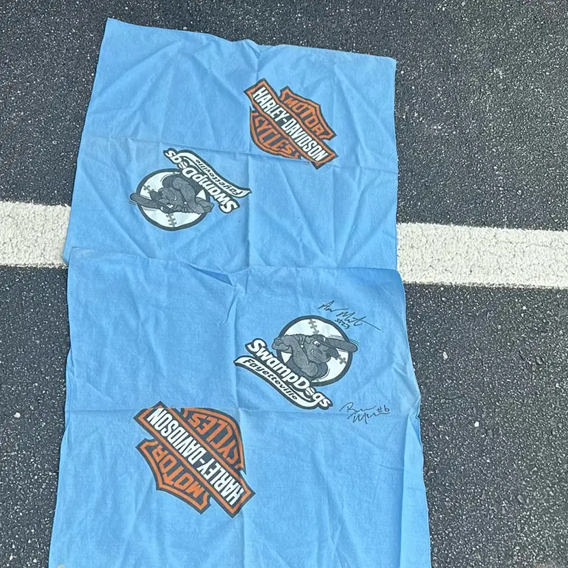 This listing includes two bandannas signed by players from the Fayetteville SwampDogs, a beloved collegiate summer baseball team. These authentic items are perfect for collectors or fans of the team. Each bandanna features signatures from team members, making it a unique piece of SwampDogs history.