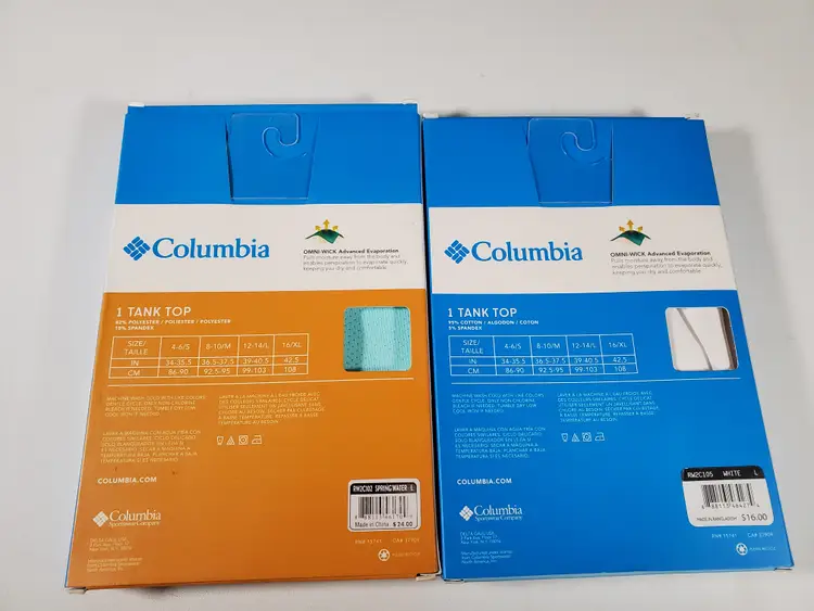 2 Columbia Size 7/L tank tops, 1 is cotton stretch and the other is athletic bonded micro.