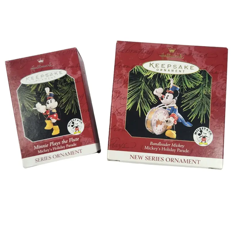 Lot of 2 Hallmark Mickeys Holiday Parade Keepsake Ornaments Mickey & Minnie IOB